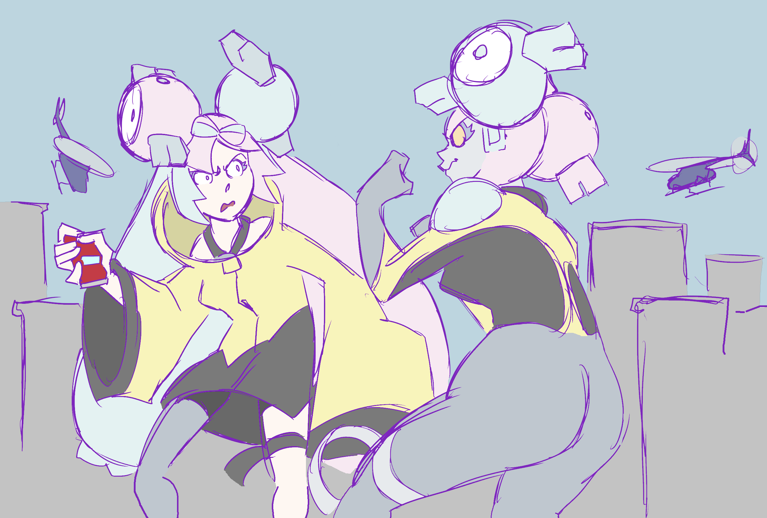 >>59103519can i get skyla taunting hilda with hilbert trapped under her shirt?