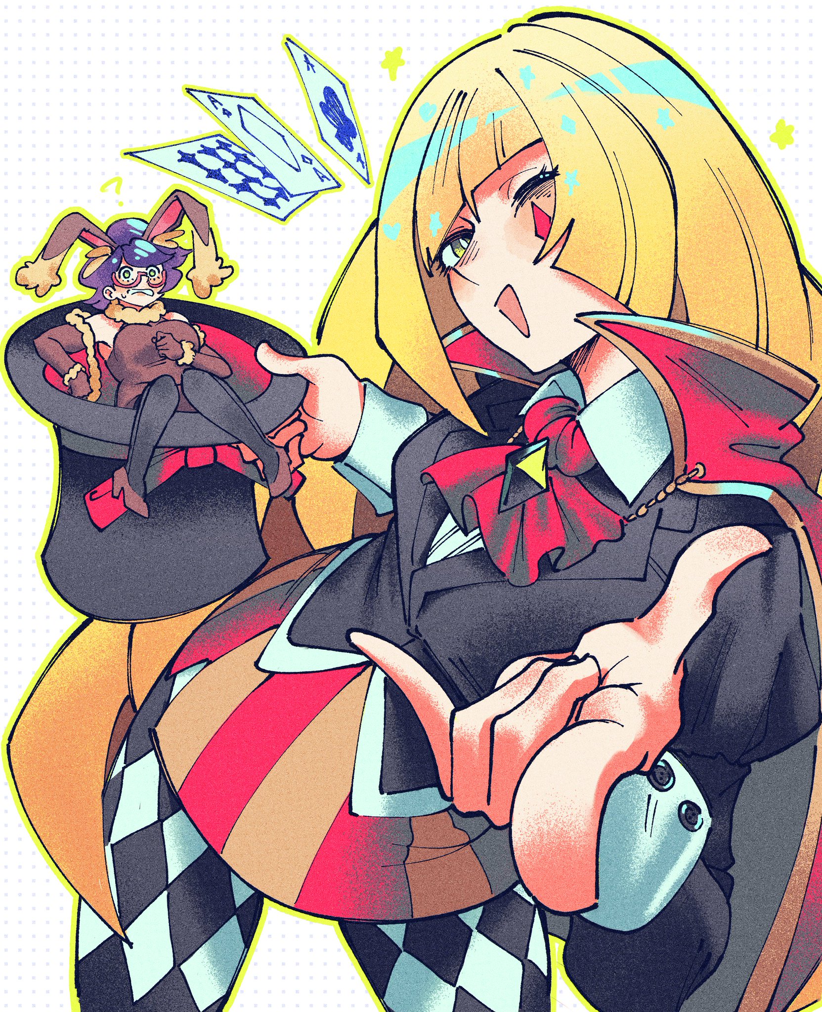 >>59103519Student Eri, as a giant, growing out of Uva Academy, as she's holding a tiny student Mela, in between her finger and thumb