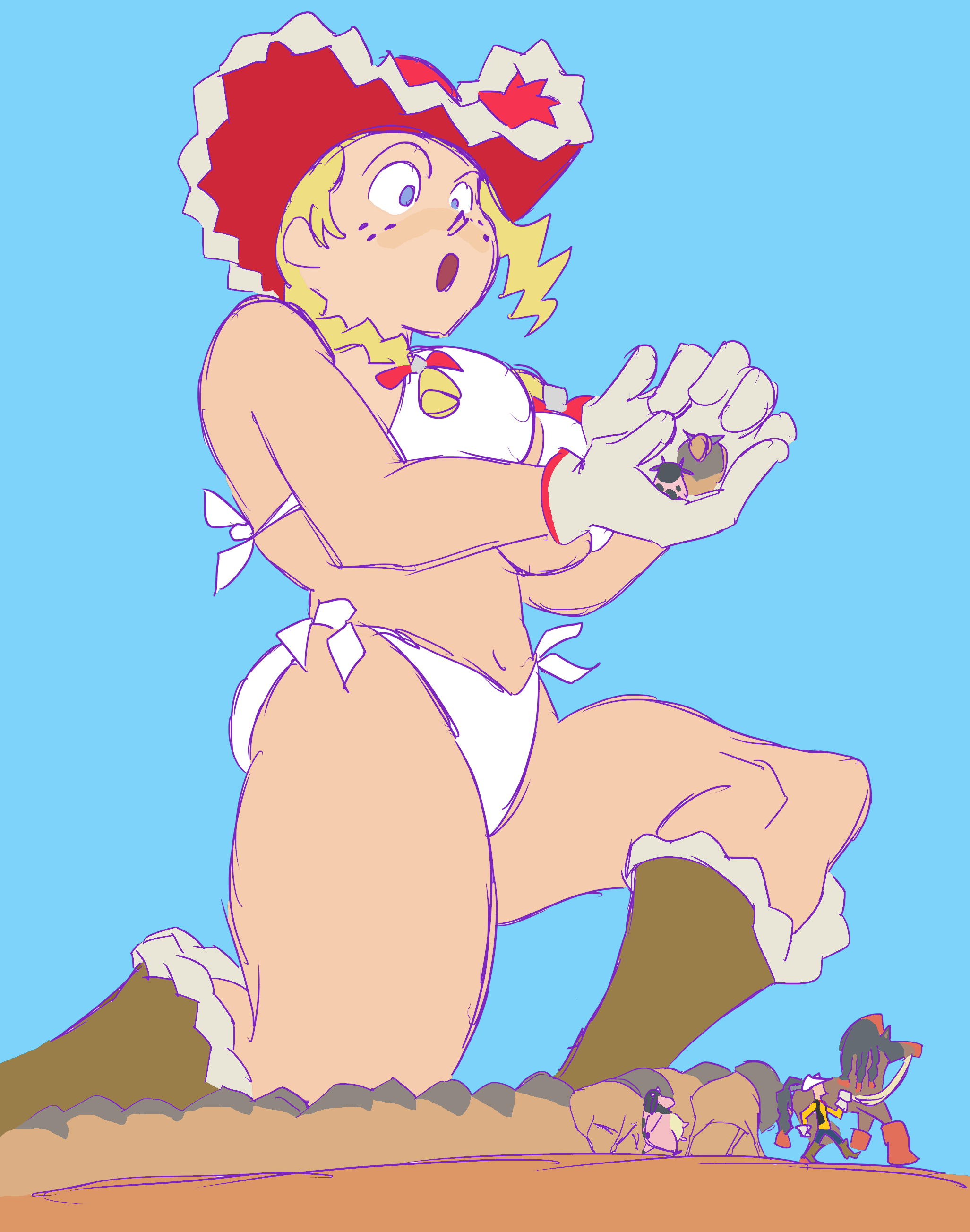 Dumb request>Girl from champions yapping about the square cube law in the palm of a confused and unimpressed Dynamax Gloria