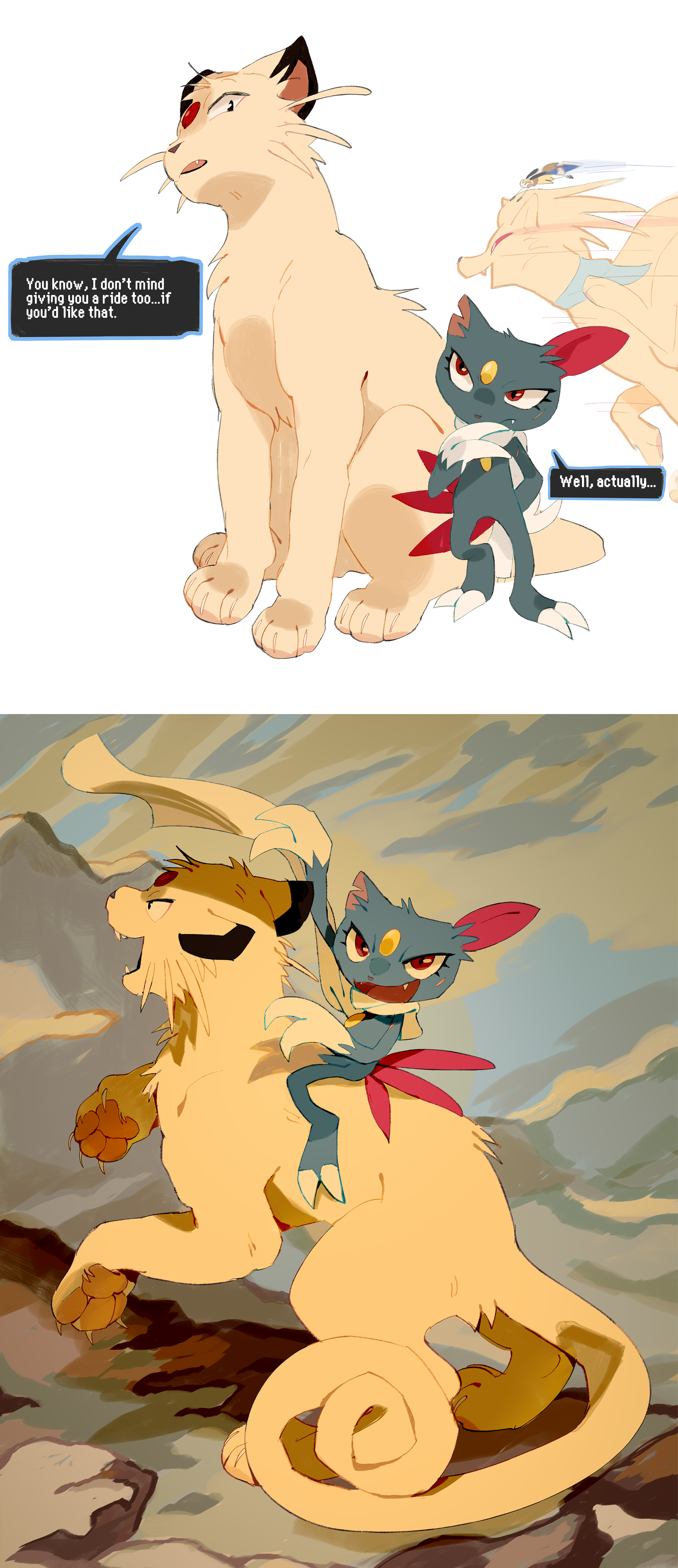 >>59144127Incredible work! Sneasel gets to have fun too :)>>59160243If Shelby evolvs first, will Blossom and Heidi get rides?