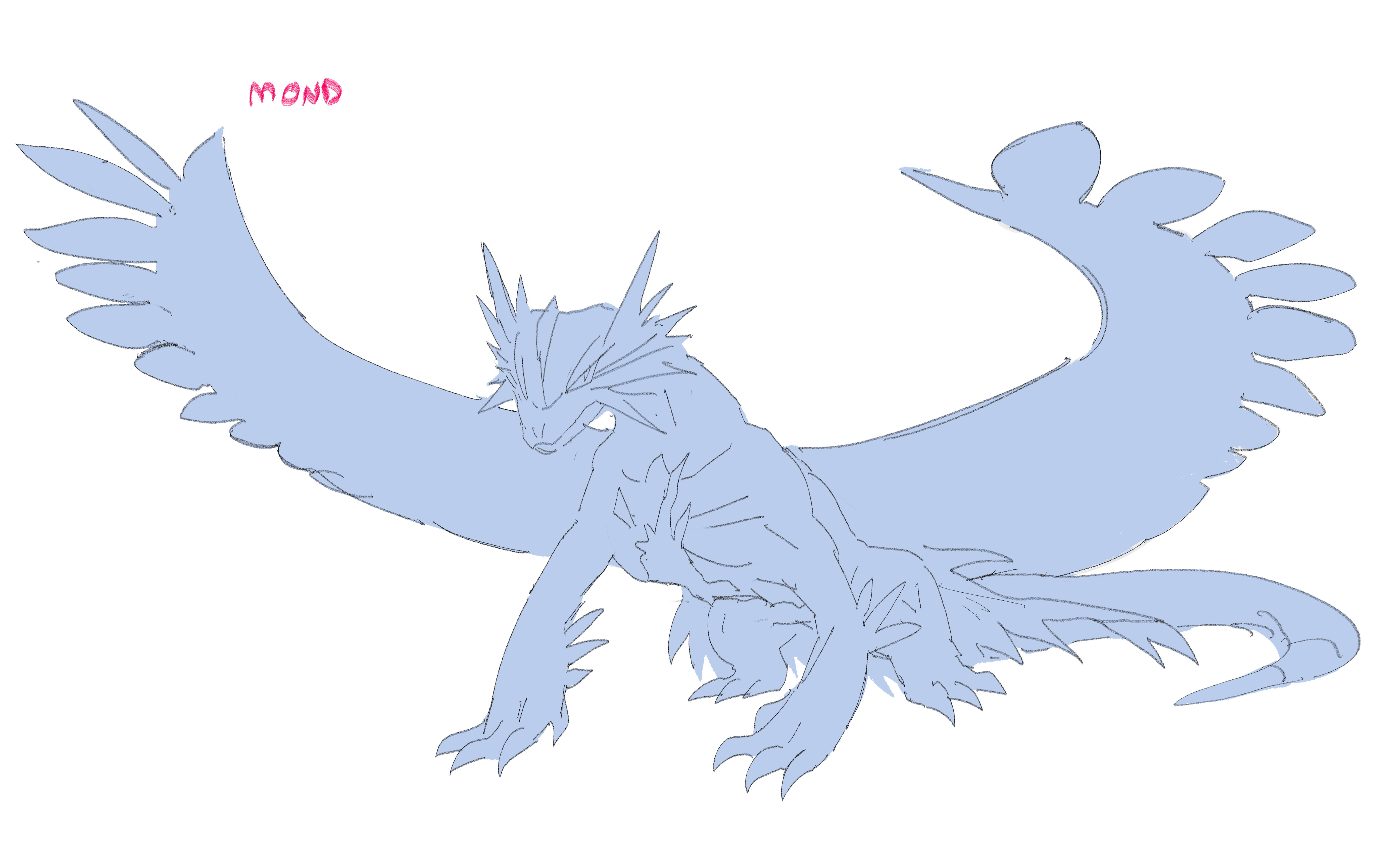 WIP for Mond's reference sheet. He's a Roaring Moon now. Mond was once a normal Pokemon, but was trapped in a magnagate till time became a blur. He was spat out one day with a new, monstrous form. Though he is strong, his body takes a toll on him and is slowly breaking down. Maybe it wasn't ever meant for this world? Despises humans for their meddling.