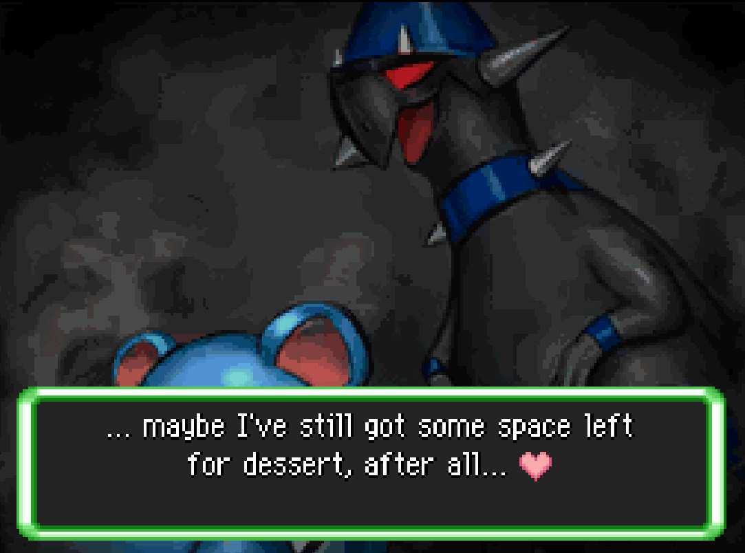 >>59115816Nice work, anon, and glad to have you here. That was a good read. The ending of the story got a chuckle out of me. You have some cool story hooks with Thunderhead, and the two of them being on the opposite end of the continent, so I'm interested in seeing more about them in the future.N/A | ? | Turtwig | Watrtel (Stormy, M, Native) | Outsider | ???>>59108451Read this as well. The issue Lint brought up was interesting to read about. It's a good use of the species and a human's relation to it. As a Solosis, Amo forms an cool thematic parallel - how he could also be seen as constantly 'wearing' something.The second to last two paragraphs may have some errors with the italics formatting.I also do have to agree with one of the above anons. Amo's monologues are somewhat YIIK-like. That's not a bad thing.Thank you for including personality blurbs.Amo | M | Solosis | Mimikyu (Lint, F, Human) | Clover Guild Member | ???