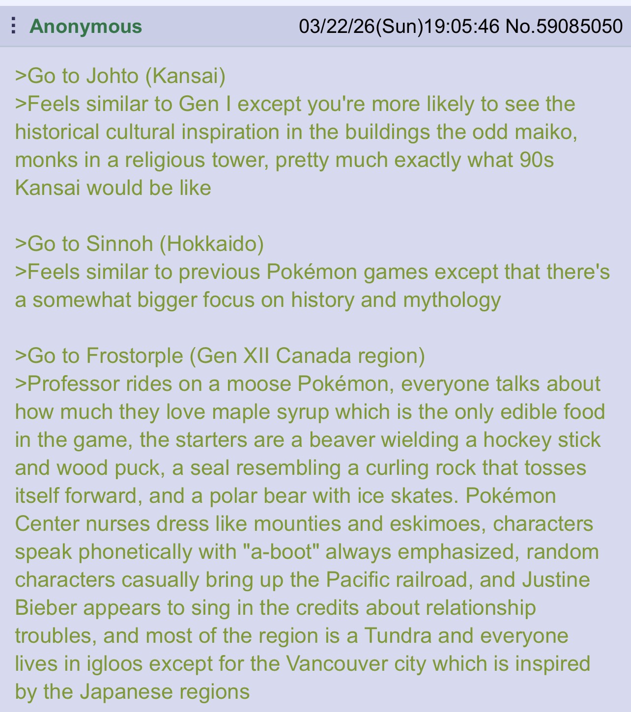 >>59093171>we all know it'd be buttraping little boys and broken economies if it were.But enough about unova