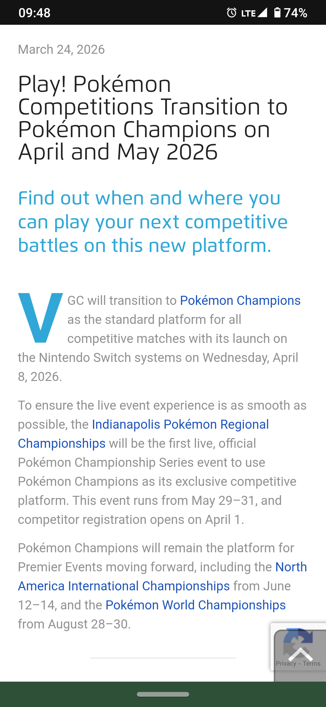 >>59094842They functionally already have.>At the Indianapolis Pokémon Regional Championships, the new Regulation M-A will go into effect.>For detailed info on Regulation M-A, please refer to the in-game announcement regarding the format that will be released after the launch of Pokémon Champions.In other words, the tournament mon availability/legality list will be announced when the fucking game goes live. Everyone will have to design and train their teams at that point anyway. No existing teams can be counted on regardless.