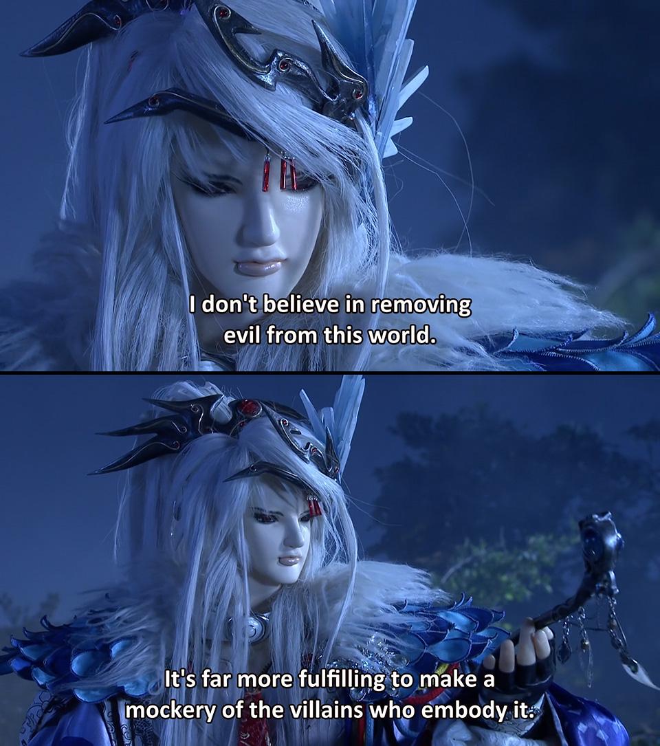 >>59104252>more upbeatHonestly, if I were to go full autism THIS should be the theme of a Final Fantasy 1 anime.https://www.youtube.com/watch?v=LpBTx_UM_lYBut I wanted something that had lyrics, and that fan remix of You're Not Alone really fits the themes of Crystal Light really well. It's also the song that plays during one of the best moments of Final Fantasy 9. Plus, in my mind Crystal Light has sort of an old school fantasy aesthetic like Record of the Lodoss Warhttps://www.youtube.com/watch?v=tEgz76YKHHYBut if I ever made a real animated opening I'd probably make my own lyrics and sing it. There's also this option.https://www.youtube.com/watch?v=OyjTDiNWT0k