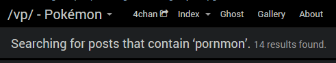 >anon skims through the OP and misreads pornmon as pokemon>goes on a 100+ reply tirade defending it with claims such as the term being too enigmatic or taking up the fight against “made-up” words themselvesI can kind of get it in genwars and such when admitting a mistake can be taken as a “win” for the other game and thus affect the course of public perception of said games, or whatever you terminally online faggots believe in.But here? You’re fighting over literally nothing so even that doesn’t make sense.
