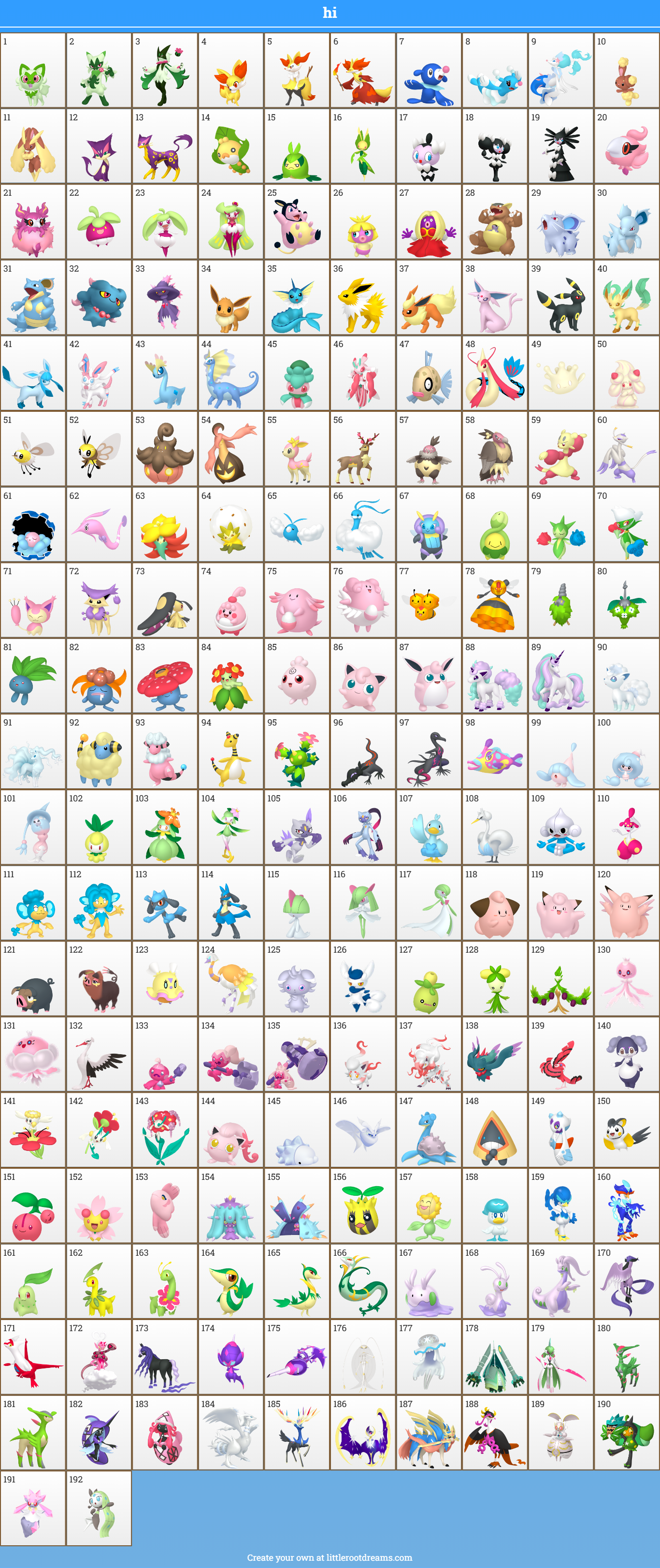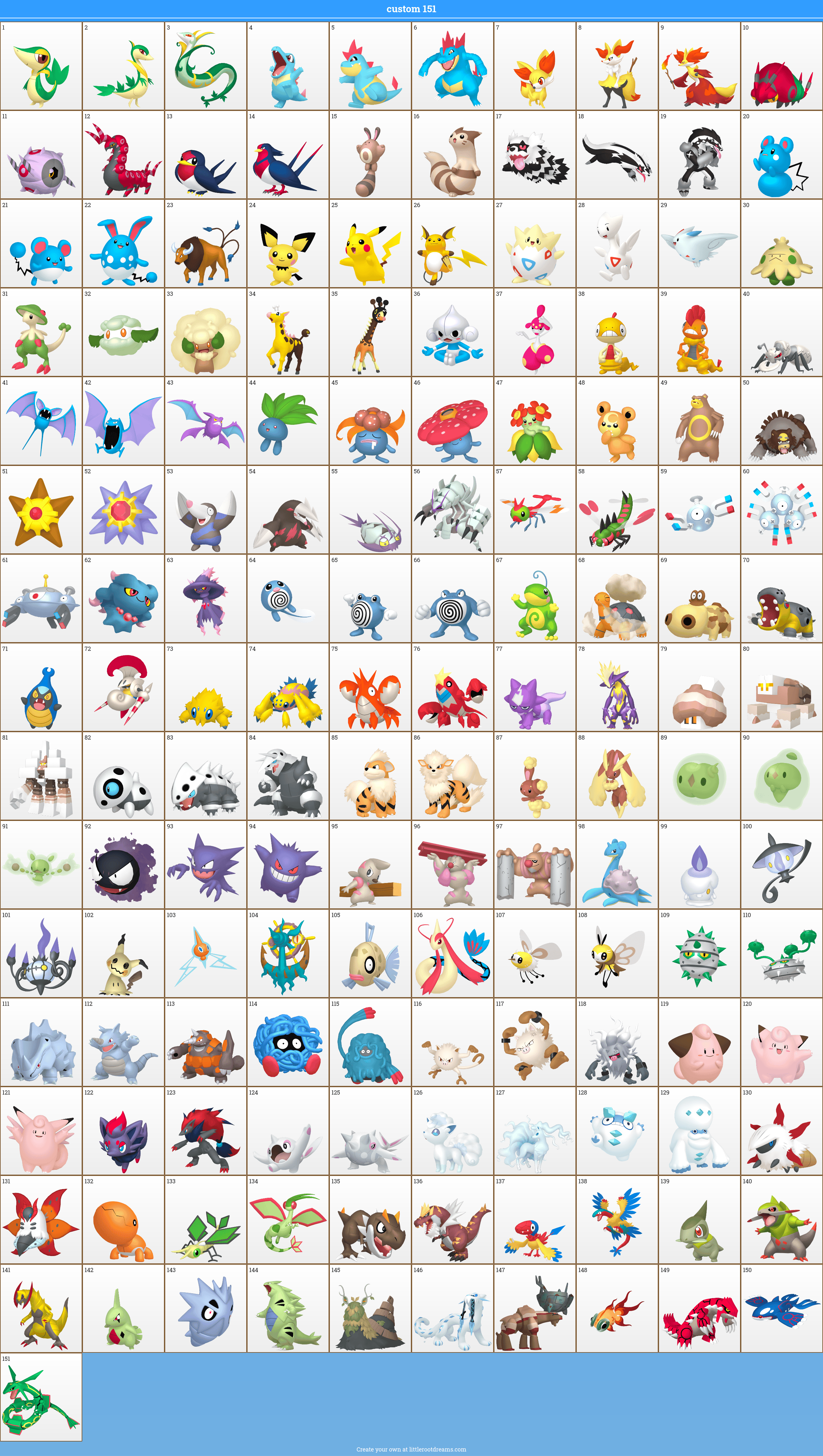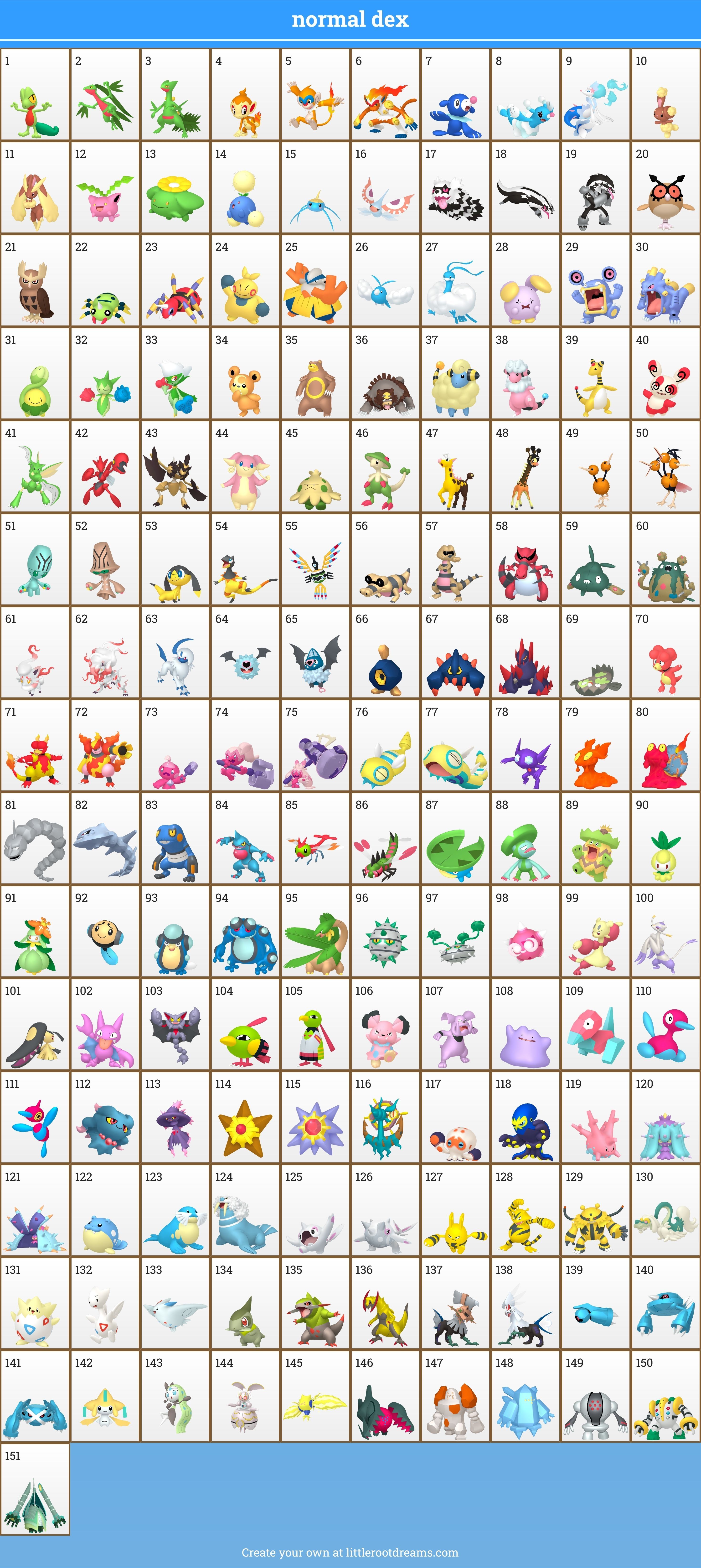 i made one with my favs while trying to have it make sense somewhat as a regional dex