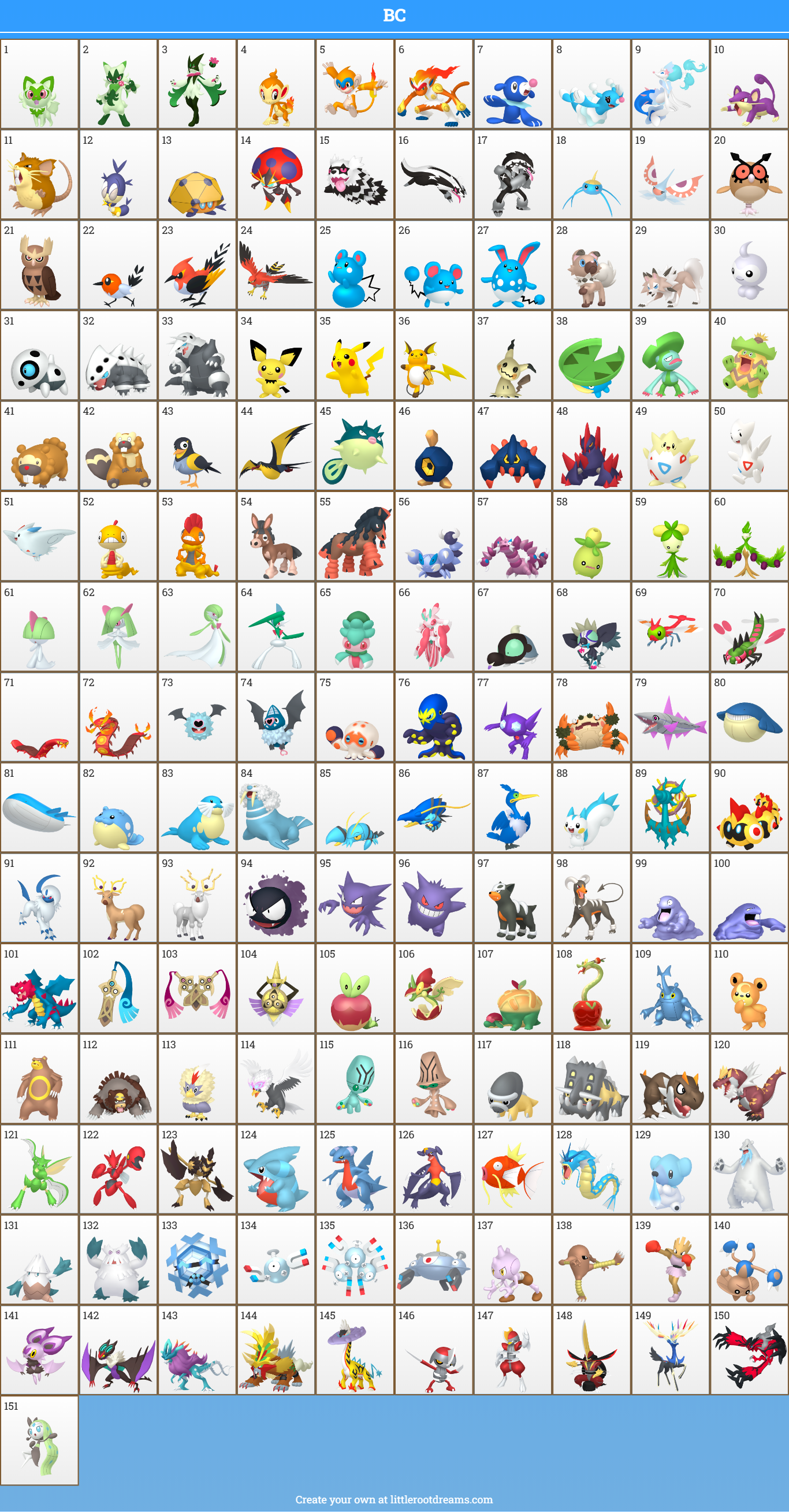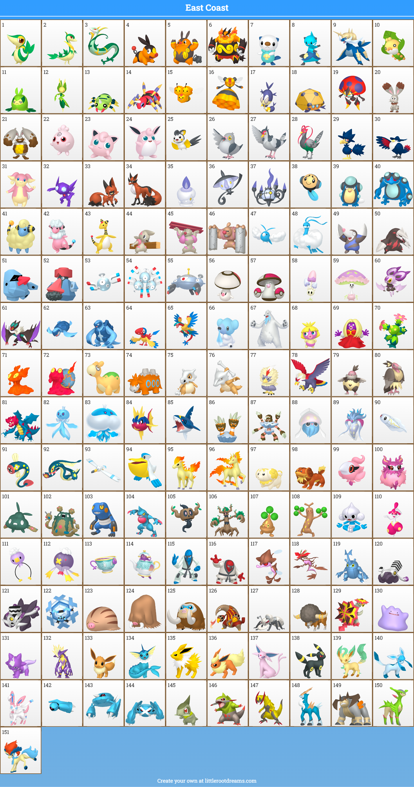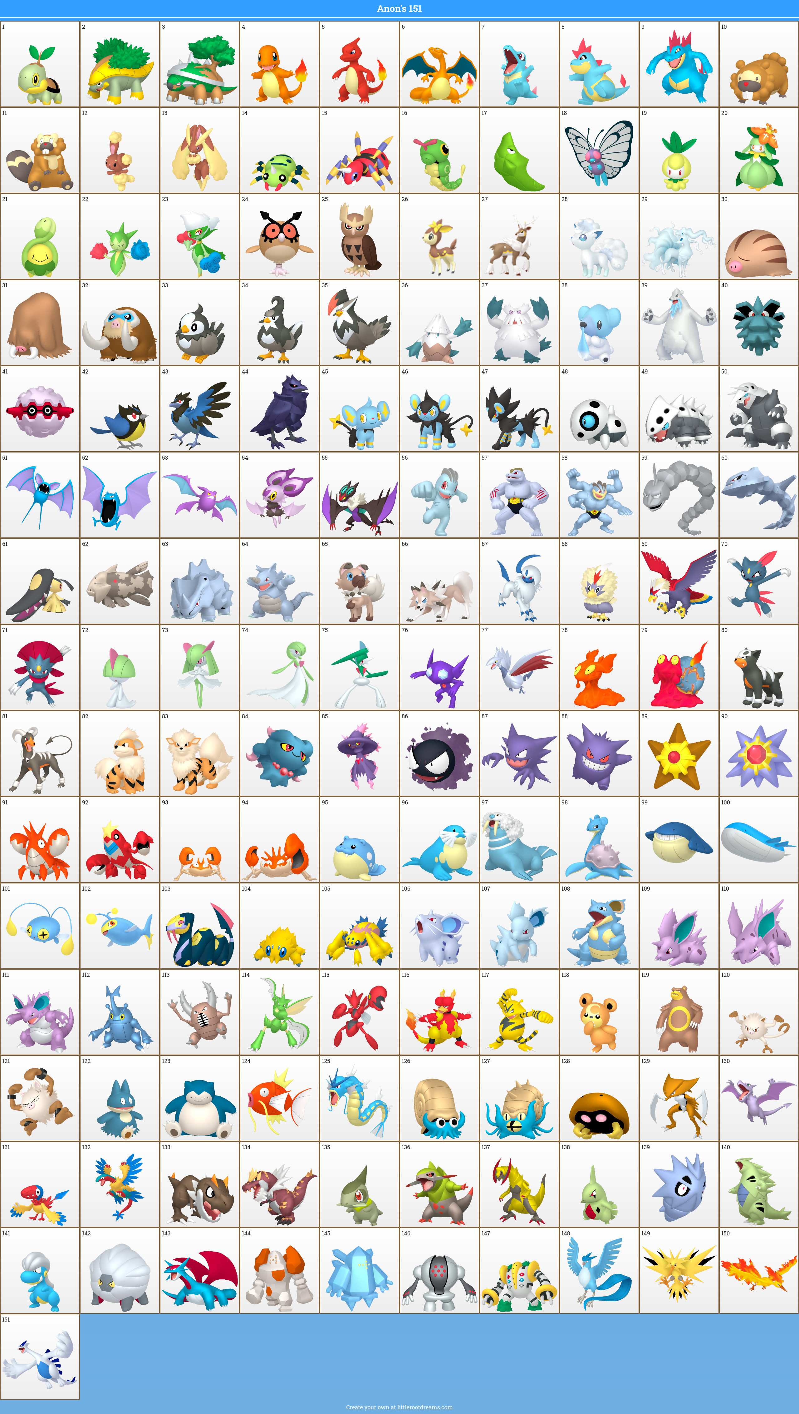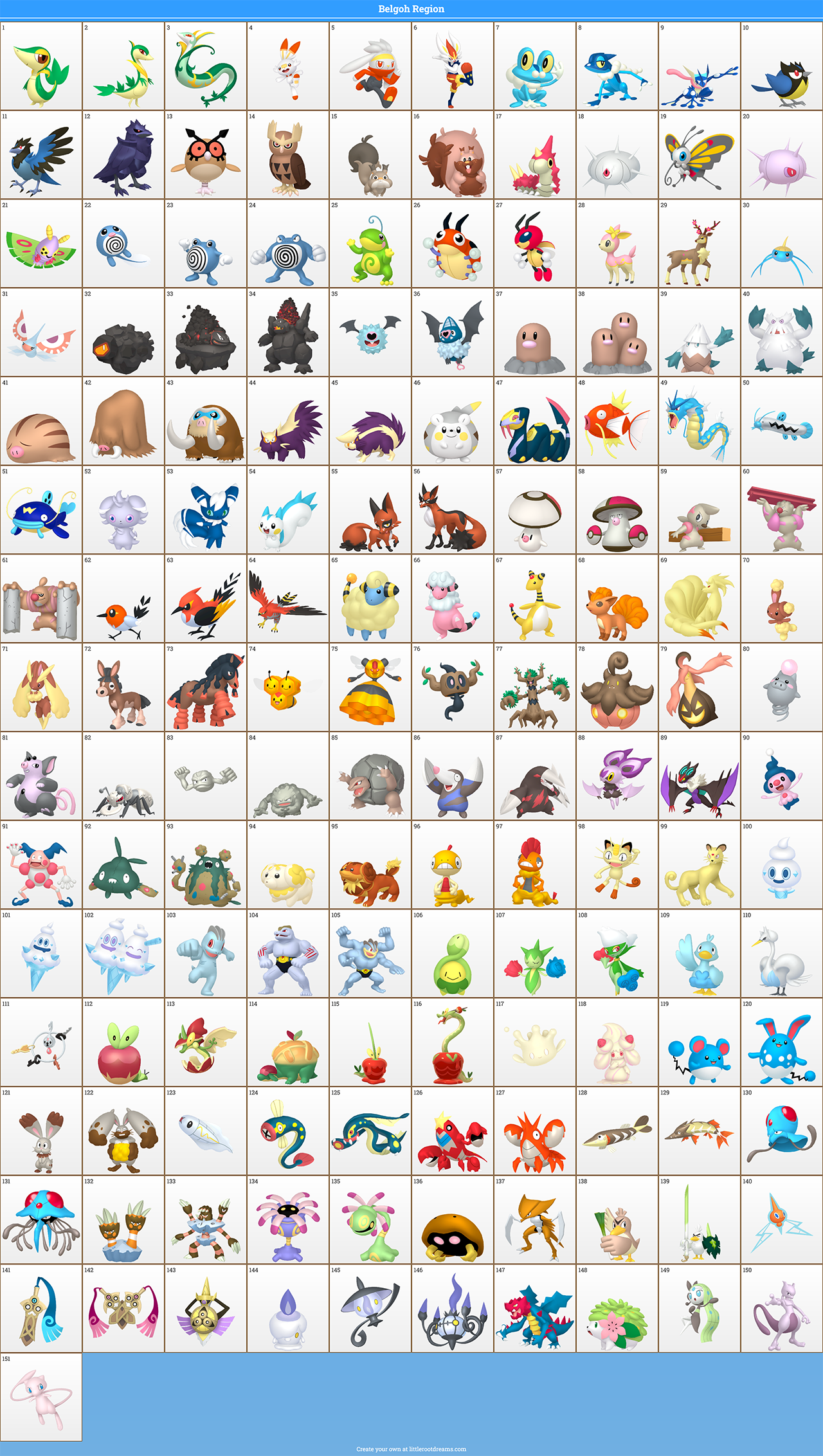 i made one with my favs while trying to have it make sense somewhat as a regional dex