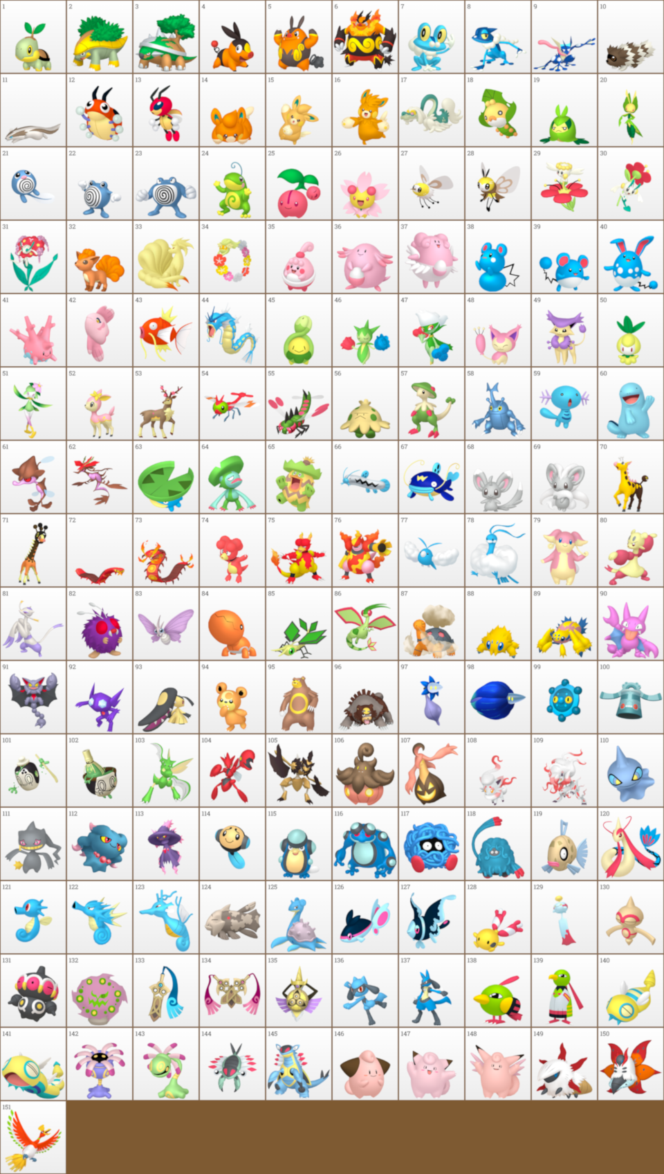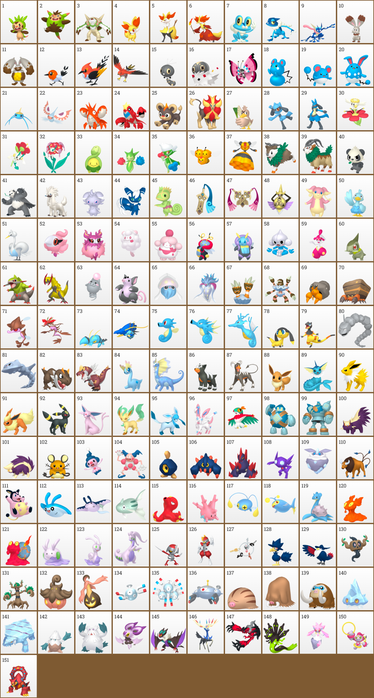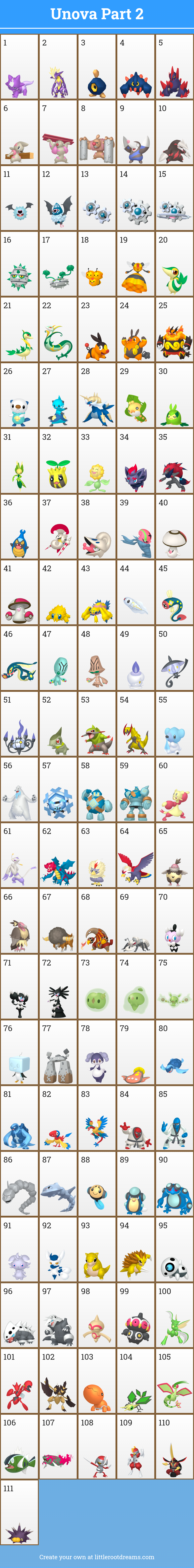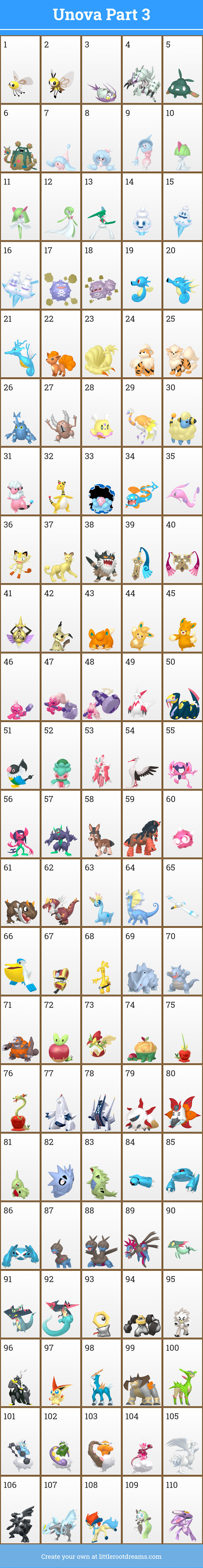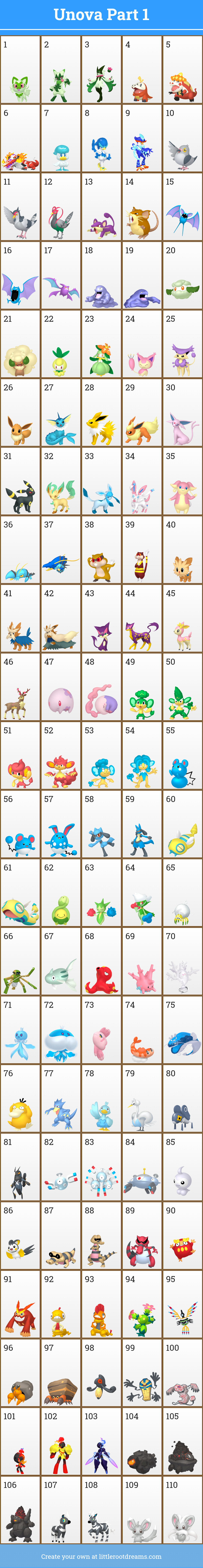 First Route 10-25Second Route 26-48Cave 49-69Desert 71-81Coast 82-94Other Pokemon I wanted 95-102Pokemon added for type diversity 103-119Mountain 120-130Rare pokemon 131-147