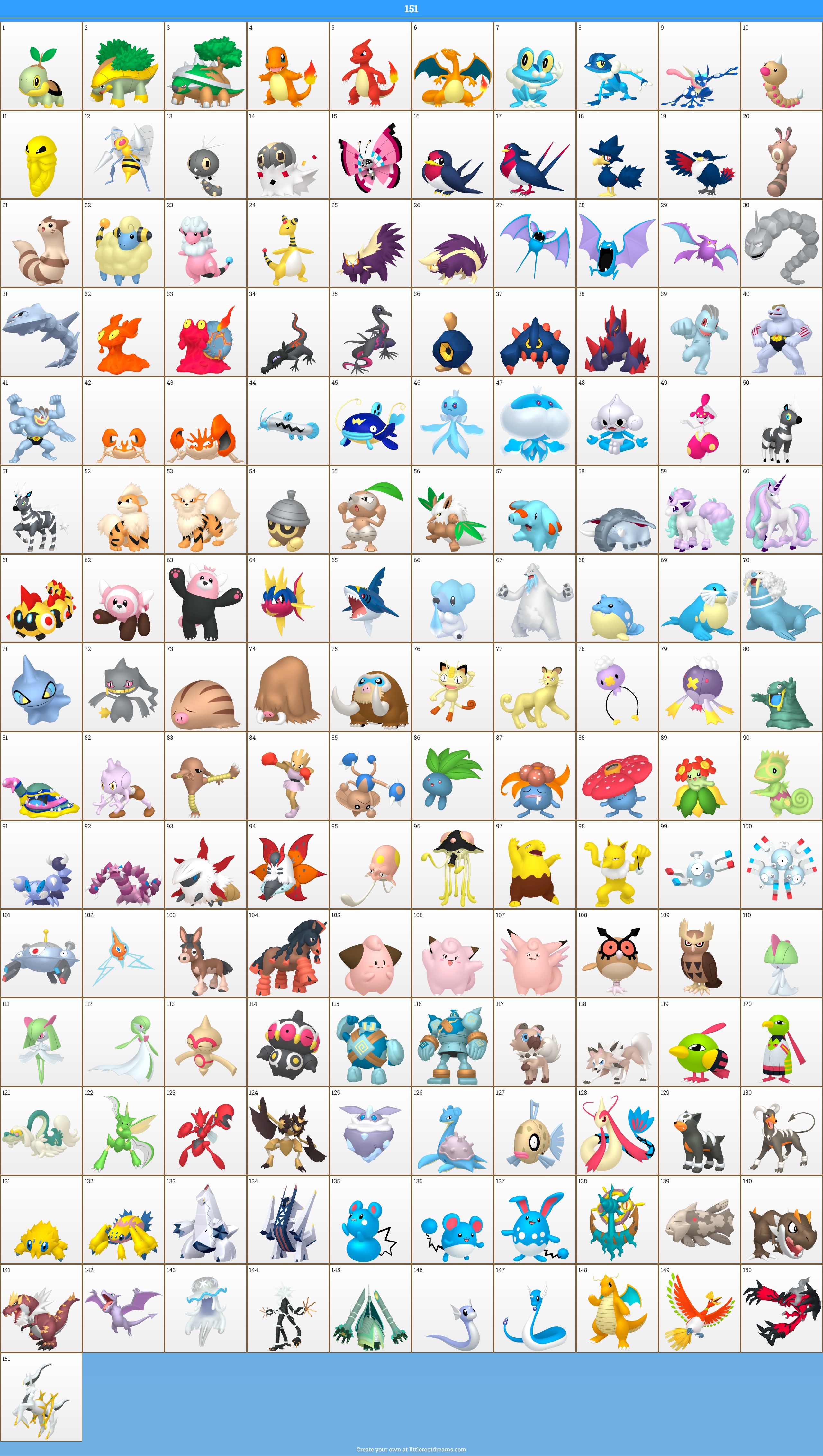 >>59103861I worked backwards and started with that group before going back to 1.Arceus is just a great mythic for 151.Legendary birds are cool and I didn't want both Ho-oh and Lugia.Dragonite line is my favorite pseudo legendary line so I defaulted to them.And I love the UBs so I tossed them in the "legendary trio" spots while trying to keep their types relatively different from the box art legends.The fossilmon I think is just neat to not have parallel choices like usual so I figure both Tyrantrum and Aerodactyl are available in the same save. Tyrantrum over other two stage fossils for another dragon type mostly even though I didn't have a dragon type specialist.