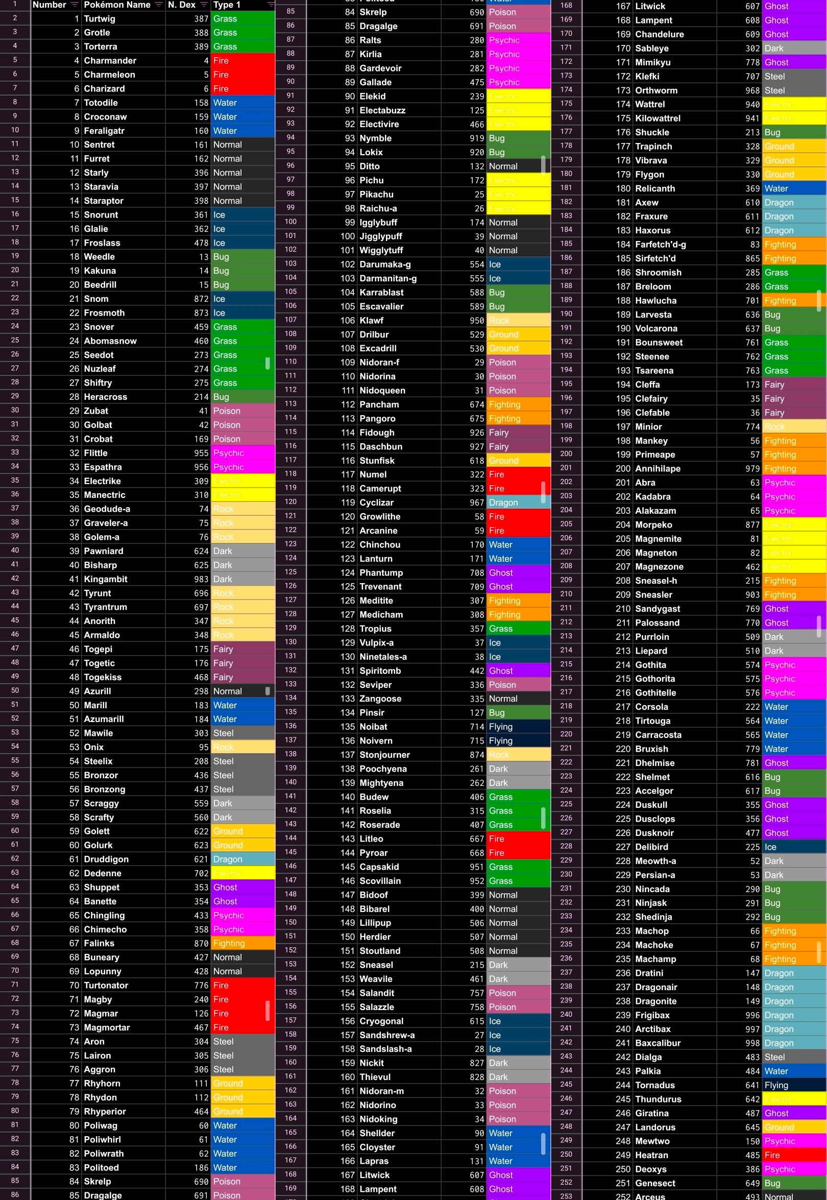 >>59102268i was focused on making sure i had enough mons to evoke a few particular biomes i had in mind (meadow, forest, wasteland, cave, marsh, cliffs, ruins, boreal waterfront, etc) and ended up having a pretty clean distribution of types with only a slight bias toward normal mons because i love them. it kinda makes me wonder how gamefreak put dexes together back when they seemed to be putting some real thought into pokémon distribution.