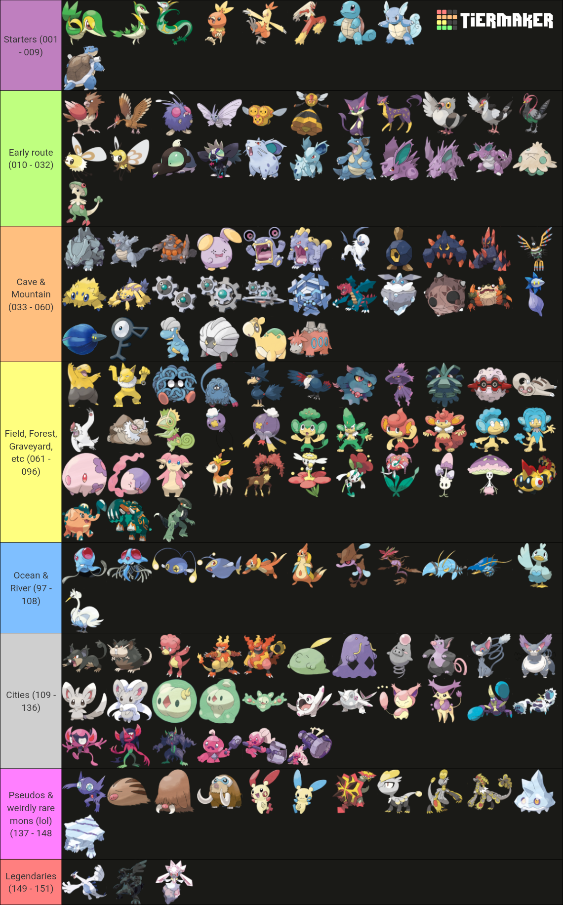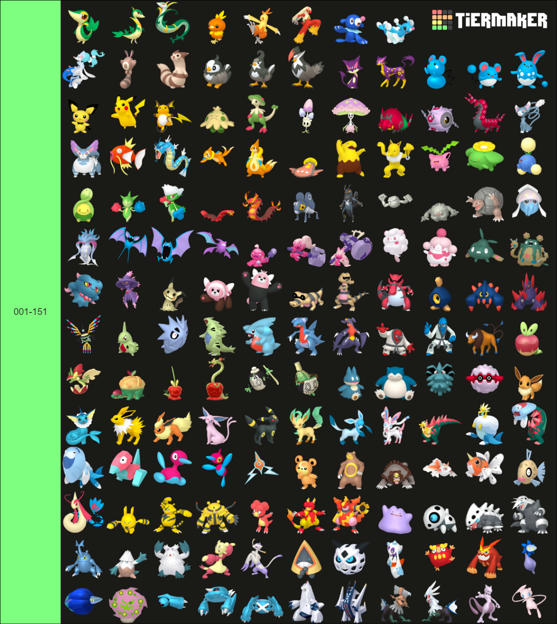 >>59102651>enough mons to evoke a few particular biomes i had in mind (meadow, forest, wasteland, cave, marsh, cliffs, ruins, boreal waterfront, etc)Maybe I should have done that too>makes me wonder how gamefreak put dexes together back when they seemed to be putting some real thought into pokémon distributionIndeed, kinda made me appreciate them a bit more.>>59103299>Pretty good dex anonBless. I didn't think too much of it at first, but seeing right now I think I like it.>What site did you use?I used Tiermaker. Pokemon (w/ Universal Gen 5 Sprites)>>59103686Yeah, well I think one can make a full team if we don't repeat types, I guess anyway