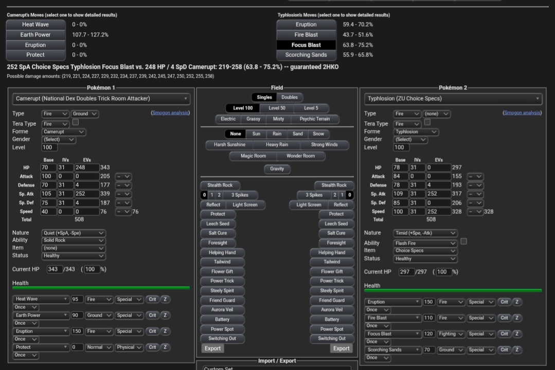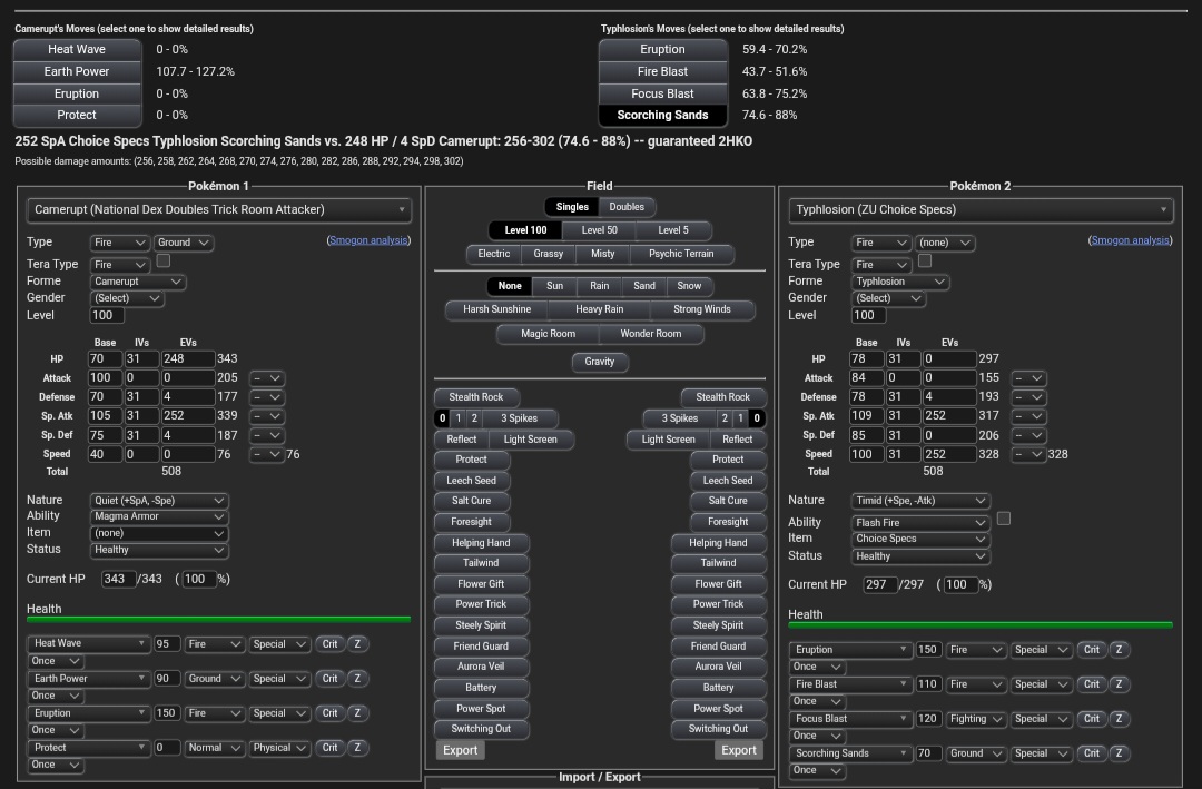 What kind of calcs are you making? Camerupt wins with no item even against Typlosion running Choice Specs and Scorching Sands