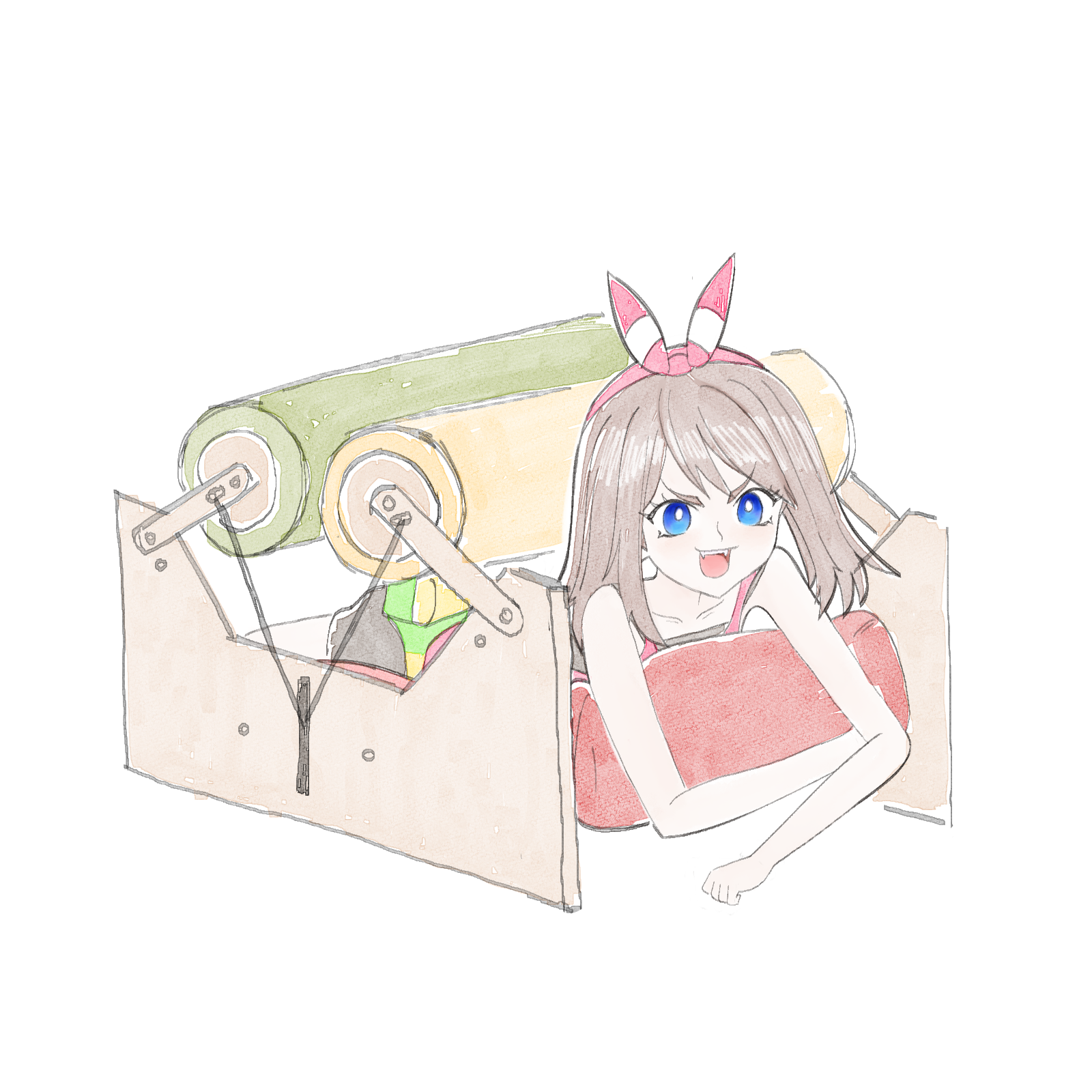 >>59124332Her bra looks undersized, but I can see what you were going for.My only real criticism is that the body is a bit blob-like, without any details or sharp edges. Harder shading or a little more musculature would give you more to look at.Much better than anything I can draw, anyway.