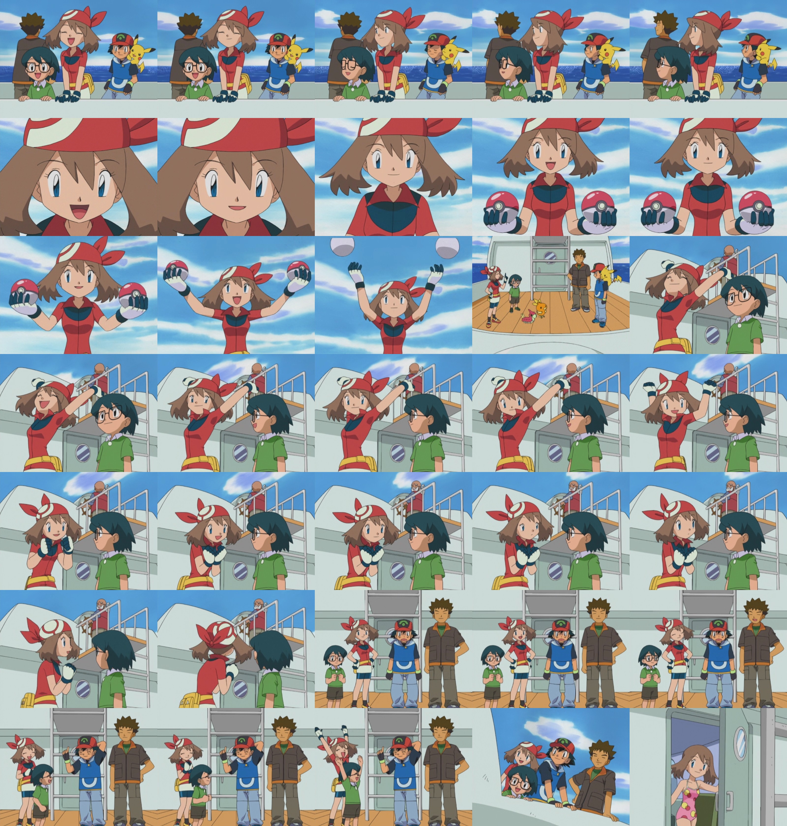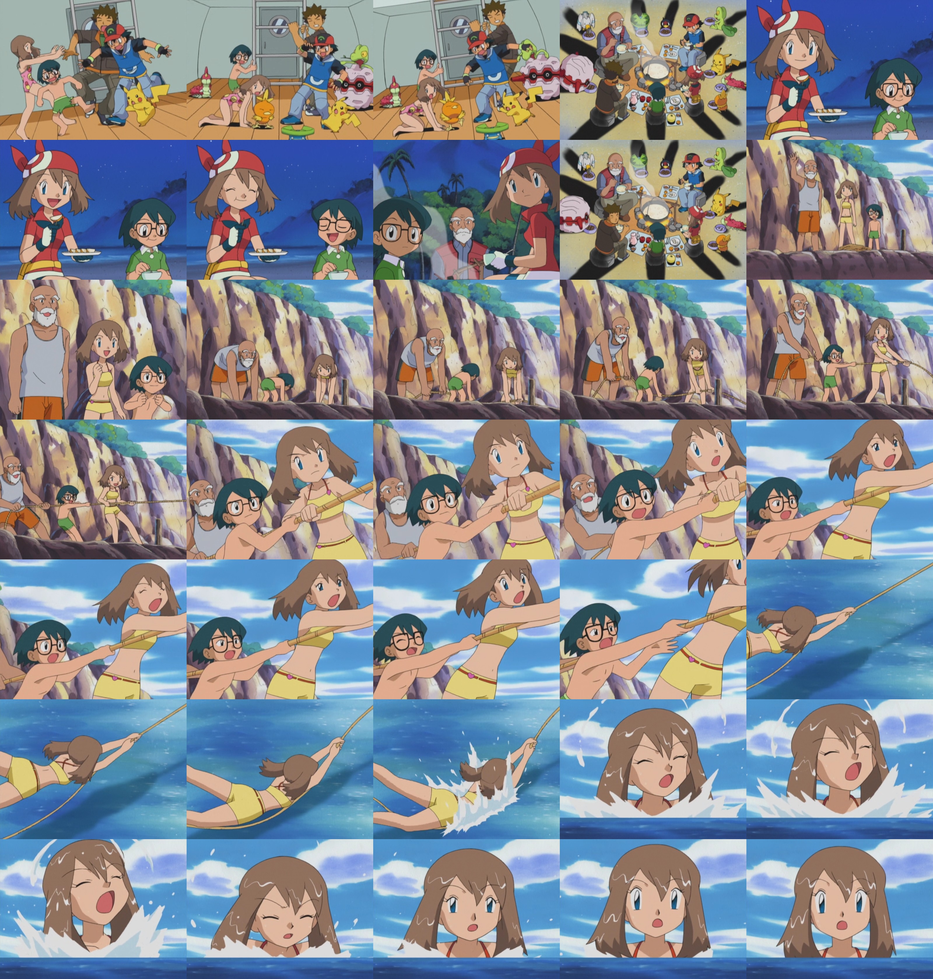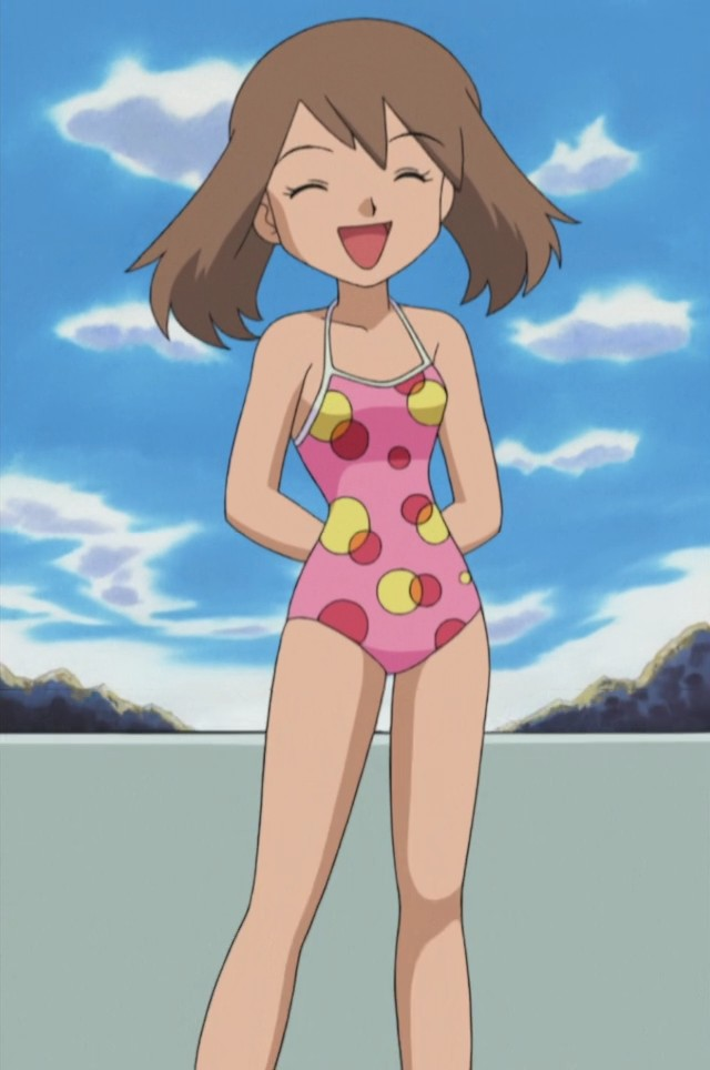 >>59123493This episode has Haruka wearing two swimsuits... so brace yourselves.On their way to Dewford May releases her Pokemon so they can relax, Ash and Brock do the same. May and Max want to take a swim, Ash objects since he wants gym battoru but the gang, particularly Max convinces him that a trainer as good as him deserves some rest after a successful gym battle, so Ash agrees.