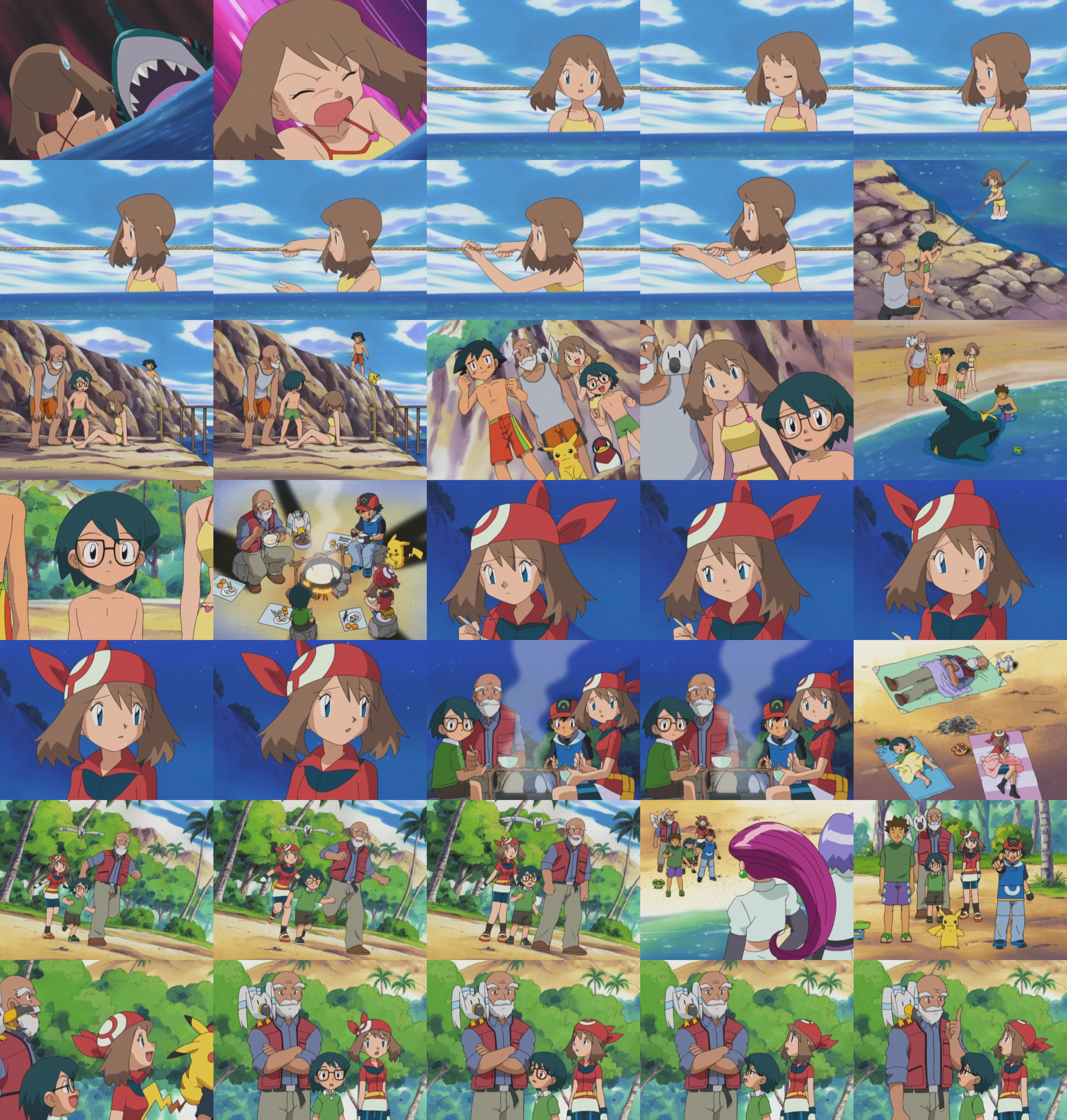 >>59126351The old man sailor from last episode detours to a nearby moon-shaped island so the gang can take a swim and May finally wears the swimsuit she bought in AG017. Her and Max are having some fun but are attacked by a school of territorial Sharpedos.Content warning, cuteness overload