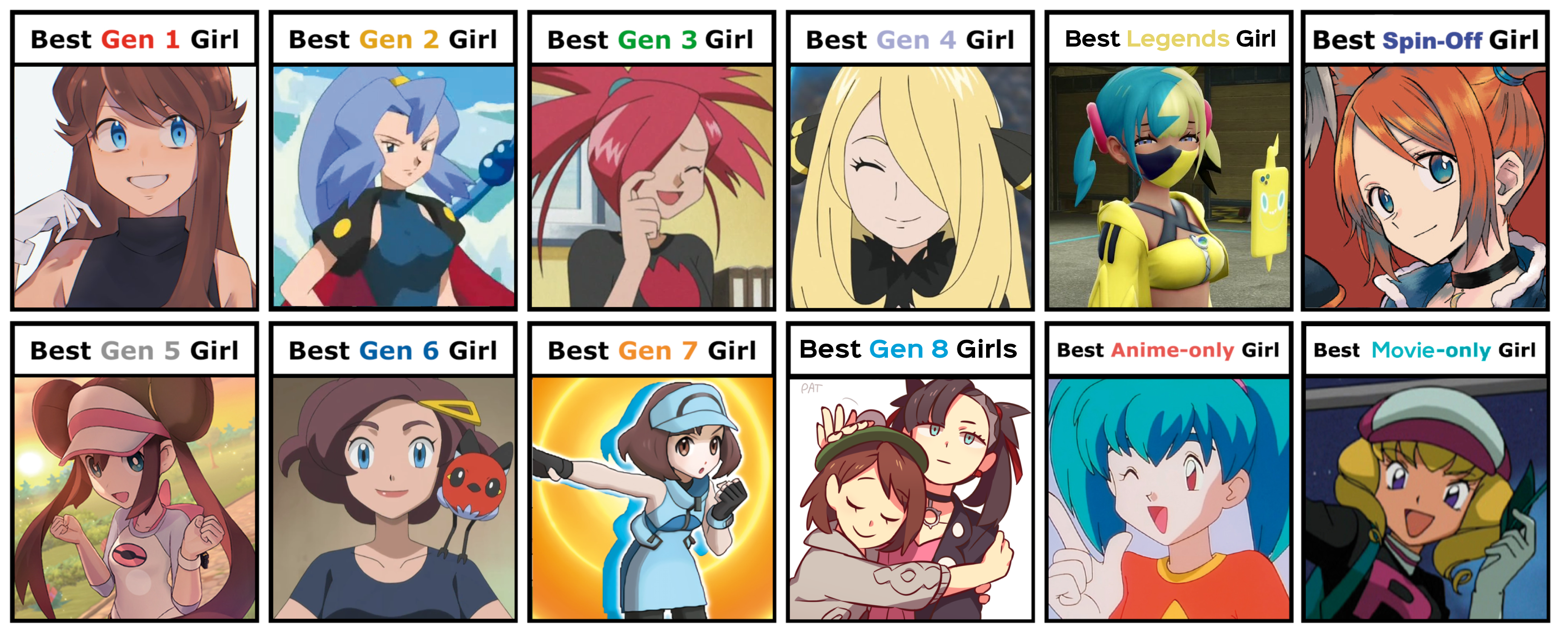 >>59104029Flannery is a good #2 for gen 3. i'd pick May. Movie only should be Melody. Everything else is solid