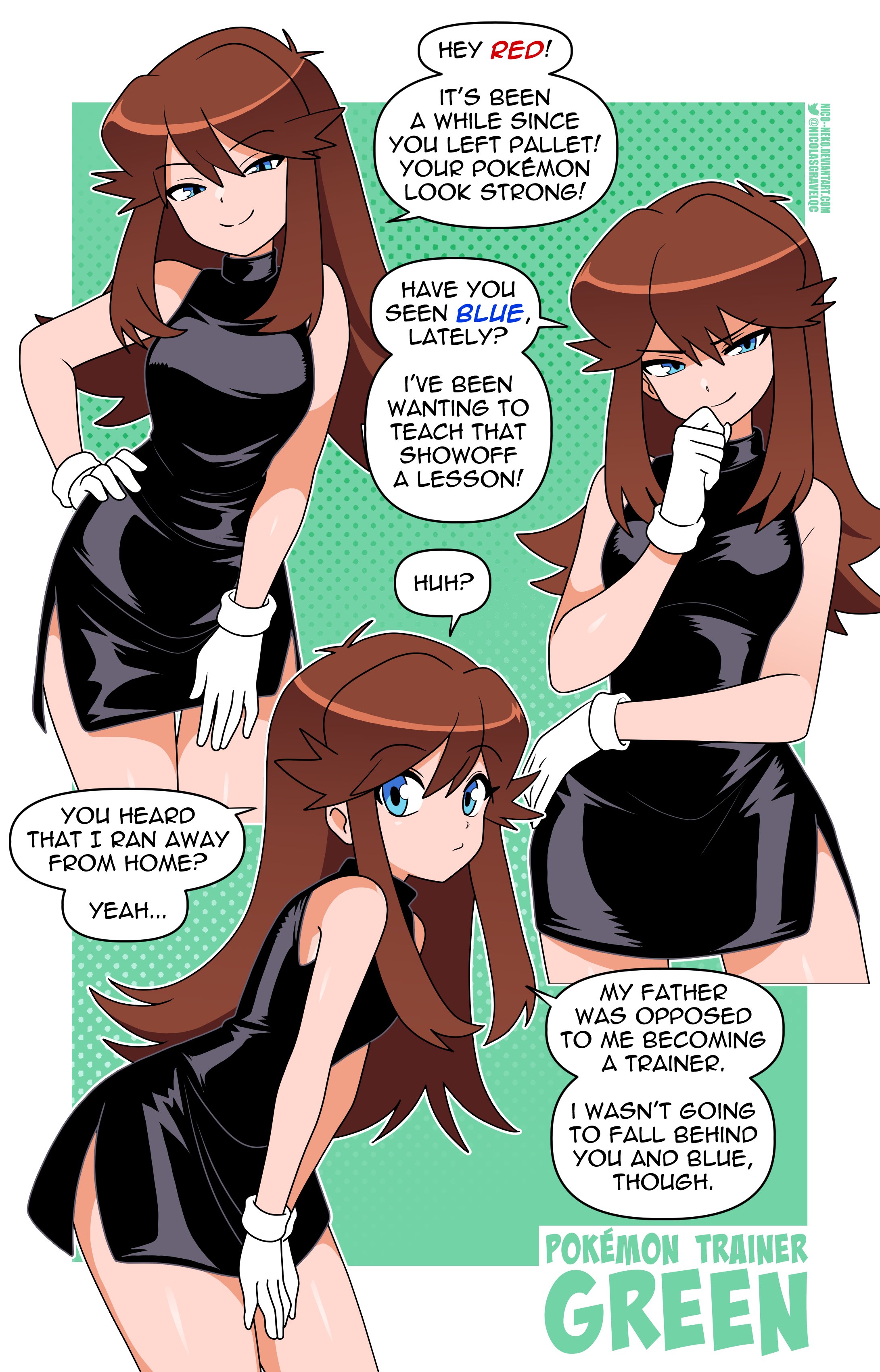 I always wonder about the timeline where she did end up in the anime as a recurring character. I imagine she'd be one of Ash's rivals following Sugimori's idea behind the artwork she first appeared in where three rival trainers are battling each other. Would she be antagonistic and mean like Gary, or a friendly rival? If she became popular enough would she have been added to Yellow?