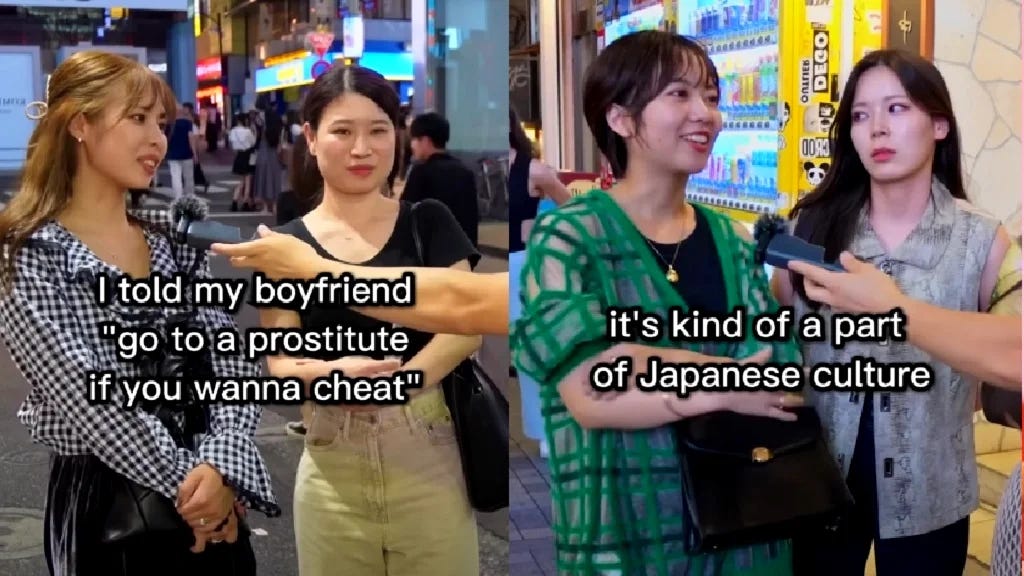 >>59106555Kind of. They're either all sluts and will proudly tell you about their boyfriend as they're making out with you, or they're just asexual otaku.That culture shown in your image is a little cherrypicked, but it's also not rare, either. But they're conditioned into it by the culture.
