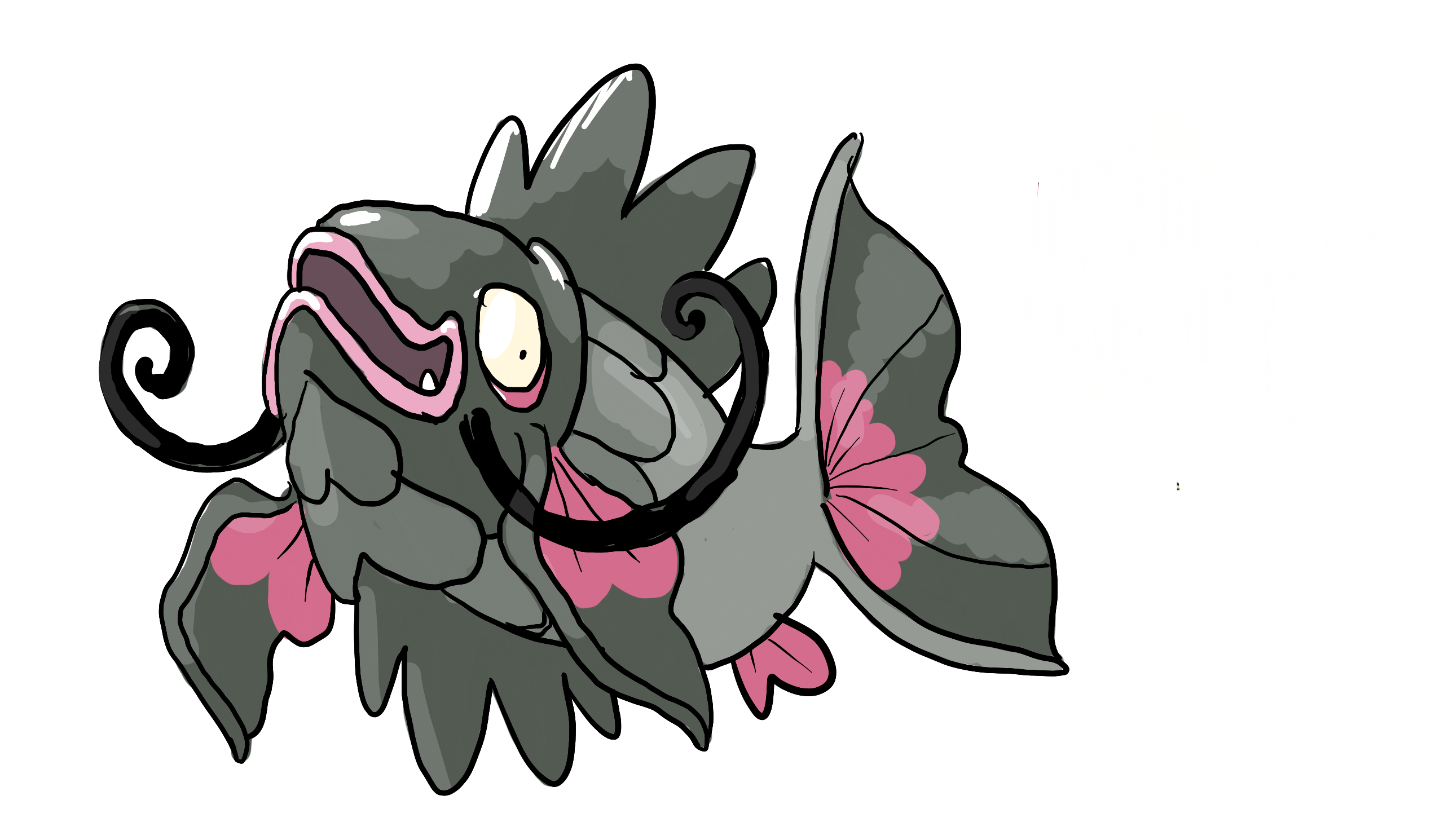 >>59109406Chinchou split evo that keeps the cool eyes and leans more into the anglerfish look instead of a dolphin. Really wide disc-like body with some bioluminessence lines on it and lionfish fins.