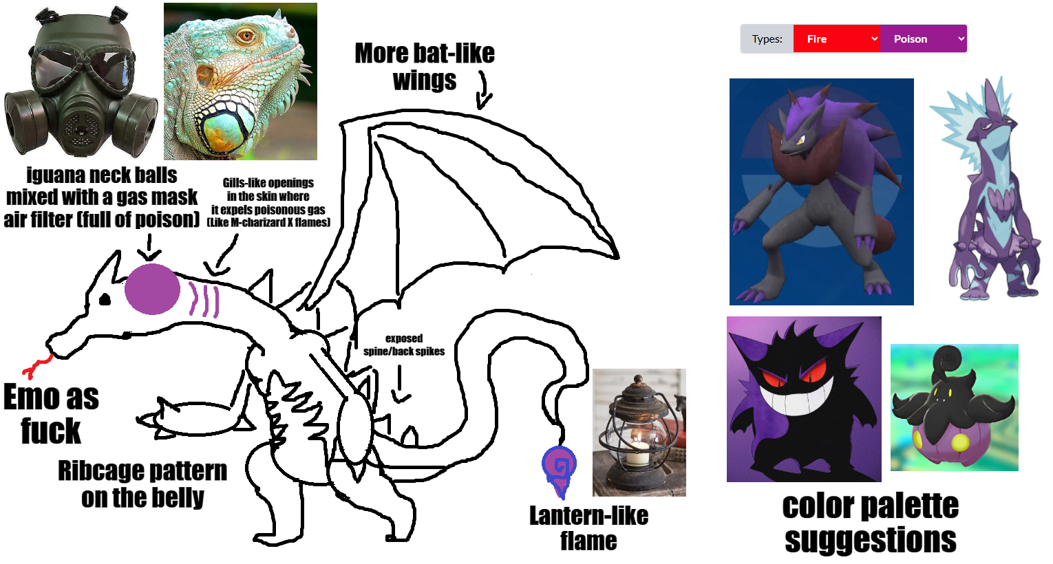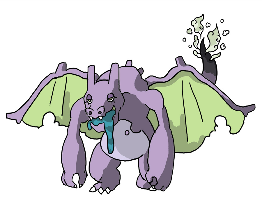 >>59109406A poison variant of charizard the body is also more of a hourglass-shape and longer limbs because i can imagine it going on 4 legs and then stand up on 2 during battles