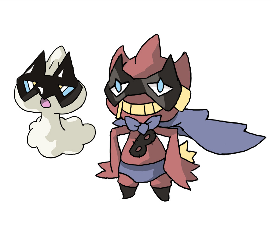 Shuppet that is a superhero's mask.Banette that is a superhero costume.