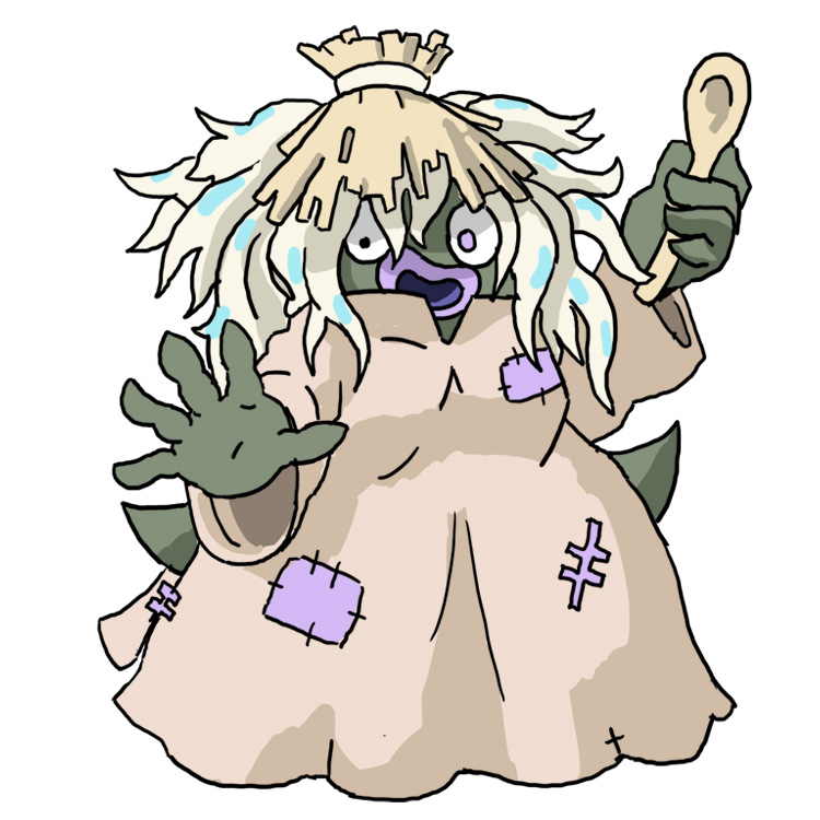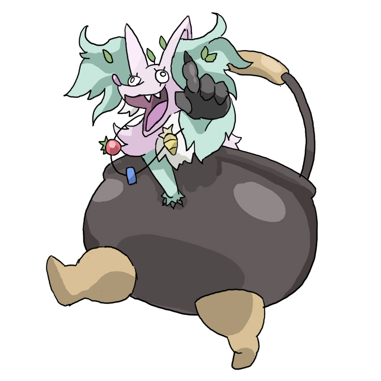 >>59109406Regional Poison/Psychic Delphox Baba YagaBlind eyes, necklace made from different bundled plants, dishevel brown and green sloth-like fur.Cauldron optional.