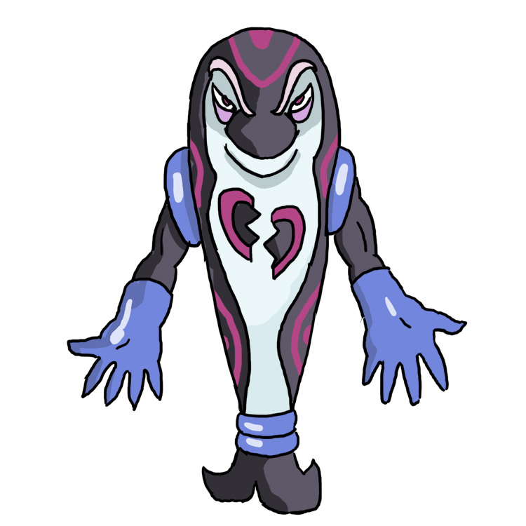Regional Palafin based on the "what if Superman was evil" trope. You know, Omni-Man, Homelander, Plutonian, all that crap.In a twist, this Regional Palafin's "default" form is the one based on a superhero, shaped like the original Palafin's Hero form and is in fact called the Hero form, reflecting how these types of characters spend a lot of time masquerading as the hero in public while hiding a sinister villainous side for later. The blues of the original Palafin could be inverted (he is primarily a lighter blue to decieve others into thinking he is 'friendly' like a Finizen) and the heart-shaped emblem could have a crack in the middle, also the original Palafin's red on the heart is a little darker, crimson or darker.The villainous form, called the "Zero" form and accessed by the ability "Hero to Zero", is shaped like Finizen/Zero form Palafin, its increased power justified by the villainous Palafin compressing its power into a smaller body to compress its power. Unlike Finizen, it is primarily darker in colour to reflect villainy, and obviously has a sinister smile and EVIL eyebrows. The heart-shaped emblem is now split proper. Maybe the eyes are red or purplish?Both forms are Water/Dark.
