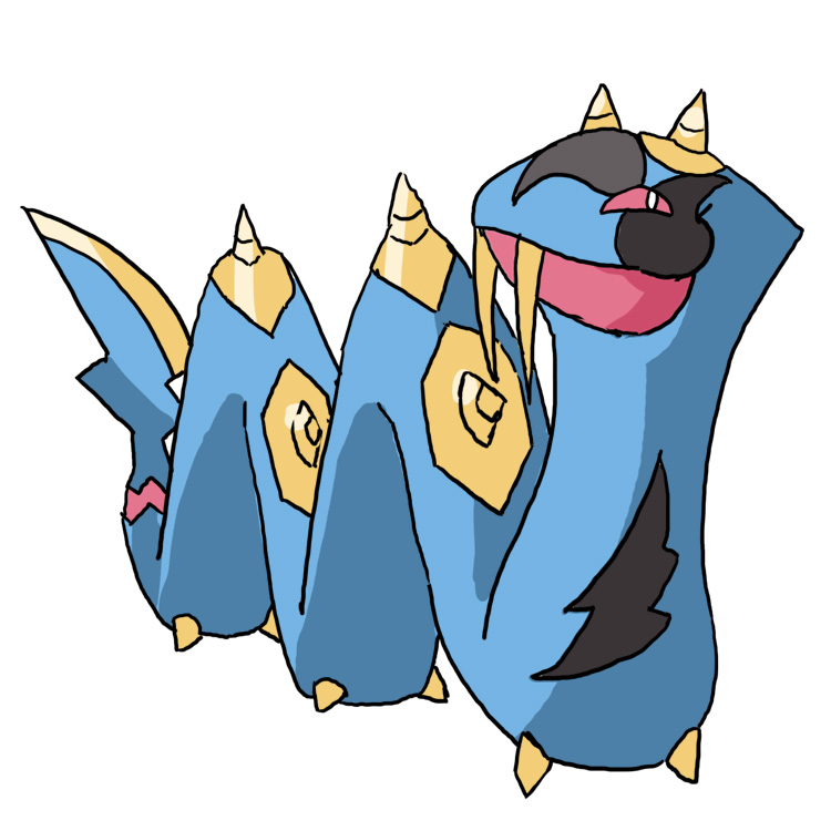 >>59109406OP, your art style is incredibly cool! You look like a concept artist for a GBC game, in the most complimentary way possible. I'm not trying to flatter you, just being honest./r/: Bug/Dragon Scolipede variant based on Desmoxytes purpurosea (the dragon millipede).The original Scolipede is based on a pun on a millipede and a horse. This one is based on a millipede and a kirin/qilin (a type of Eastern dragon). This variant has black racing stripes down its back and has a set of spike-like scales along. The horns on its head resemble Kirin antlers, and they are black (to match D. purpurosea's coloration).