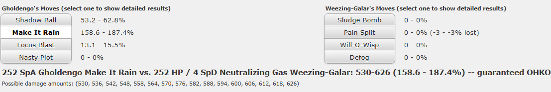 >>59119008>>59124763>>59124769You’re not staying or switching in on Ghold with G Weezing lmao. The point is that it’s the only Pokemon aside from Mold Breaker Hawlucha (lol) that can Defog freely regardless if Gholdengo comes in or not.