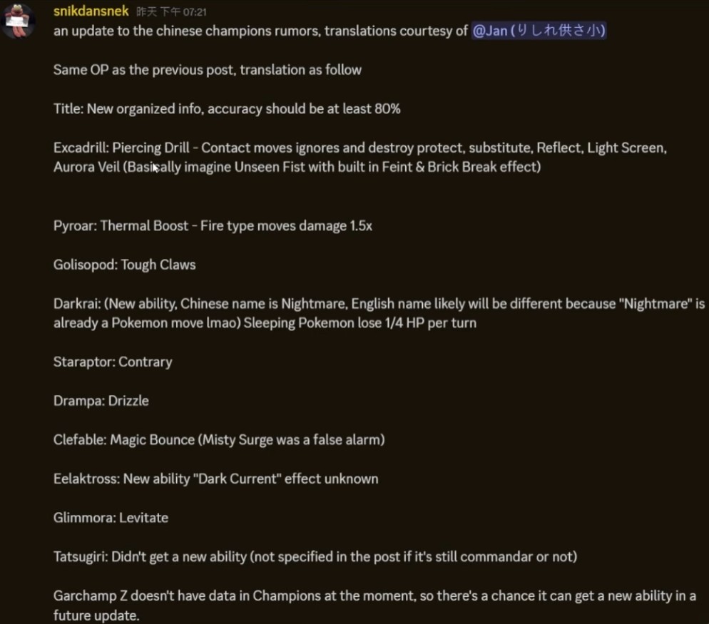 >>59126298After all the old megas stomping, and then ultra beasts / paradox mons being perfectly minmaxed. They really should've put more effort into the new batch of ZA megas to keep up with powercreep. Even ones like dragonite and delphox are unlikely to see any play compare to the competitionFroslass and potentially greninja are looking to be the only two worth their weight currently as your mega stone slot. The rest look like filler. Can't give a full opinion on ones without known abilities yet but holy shit they fucked up their statspreads so unbelievably bad on most, it's like they didn't even try..
