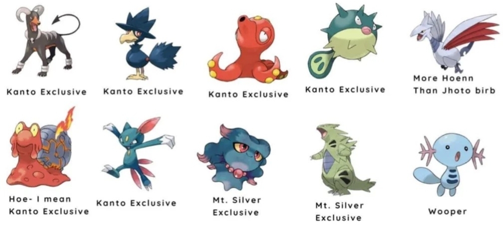 >>59123869skarmory and wooper have no reason to be in this image. the rest support the complaint (which is a silly complaint that misses the point of the games and is prettu succintly shut down by the op but i digress), but skarmory and wooper are plainly johto pokemon and their inclusion here is blatant bad faith to make the "problem" look bigger than it is