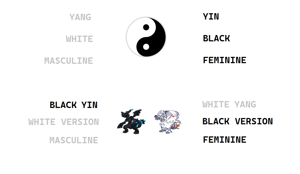>It's obviously a play on the yin in the yang and the yang in the yin but how should we interpret it, is Zekrom a masculine mother and Reshiram a feminine father, or is Zekrom a feminine man and Reshiram a masculine woman?