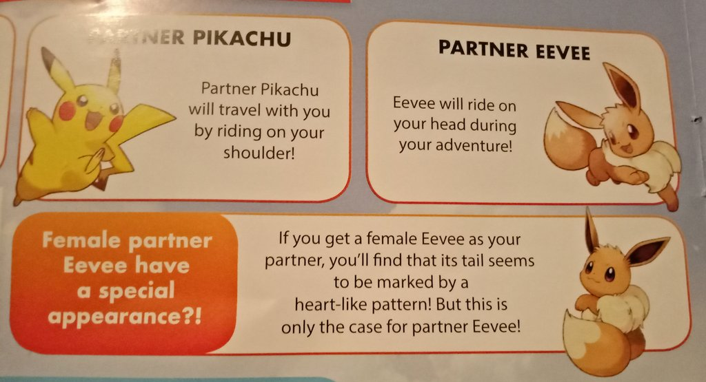 How many times has Chase been depicted with Eevee and how many times with Pikachu? And which one of the two starters got a new female form made exclusively for that game, so exclusively that other females of the same species don't have the gender difference and only your starter does?