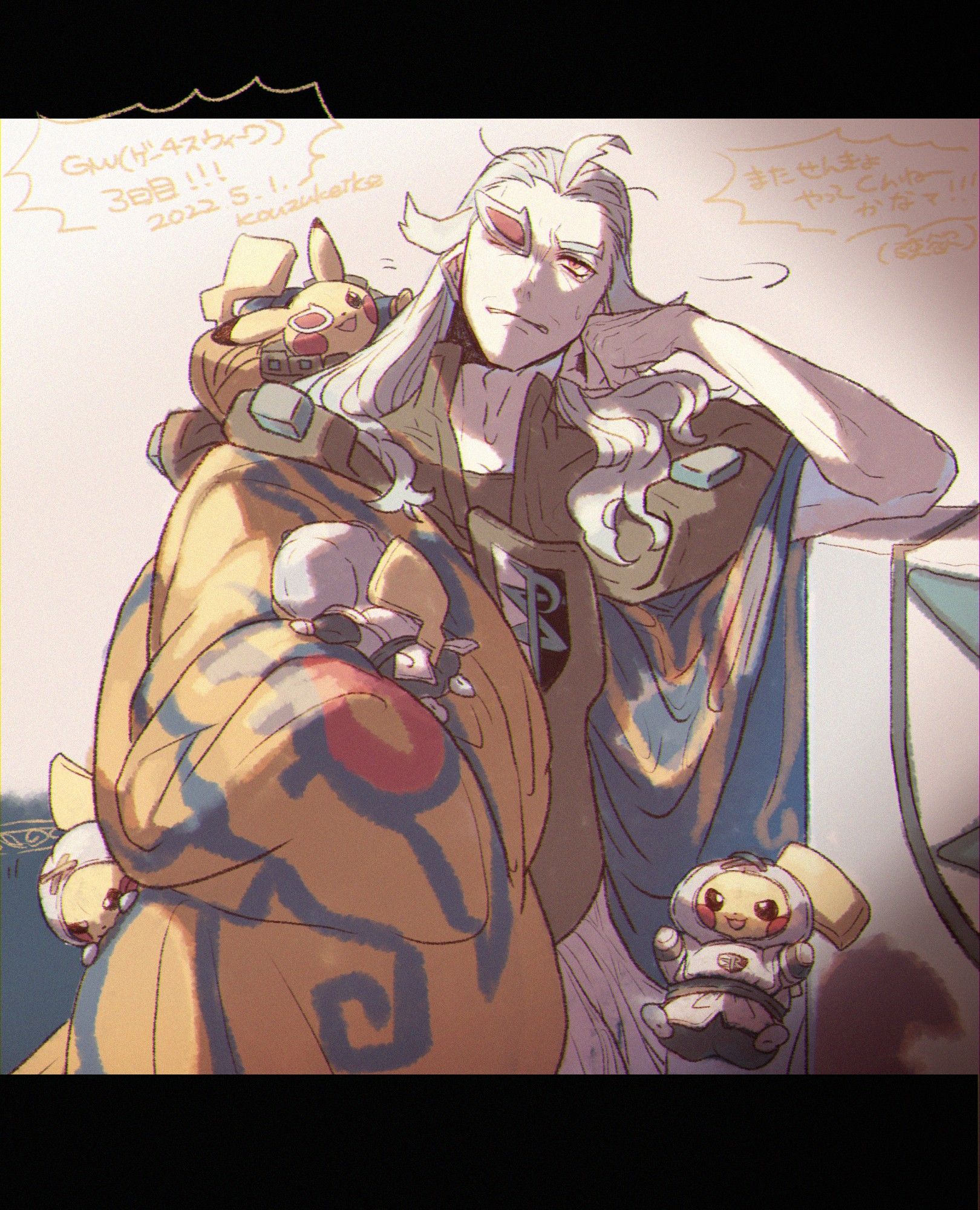 Missed the exact day but it’s Easter time and I’m thinking about my husband and our little egg baby. I like to imagine little Togepi watching Burgh paint all the eggs for the event and wanting to get all decorated too. So Burgh finds some nontoxic Pokémon-safe paint and covers Togepi’s shell in cute patterns every so often. The little guy loves it