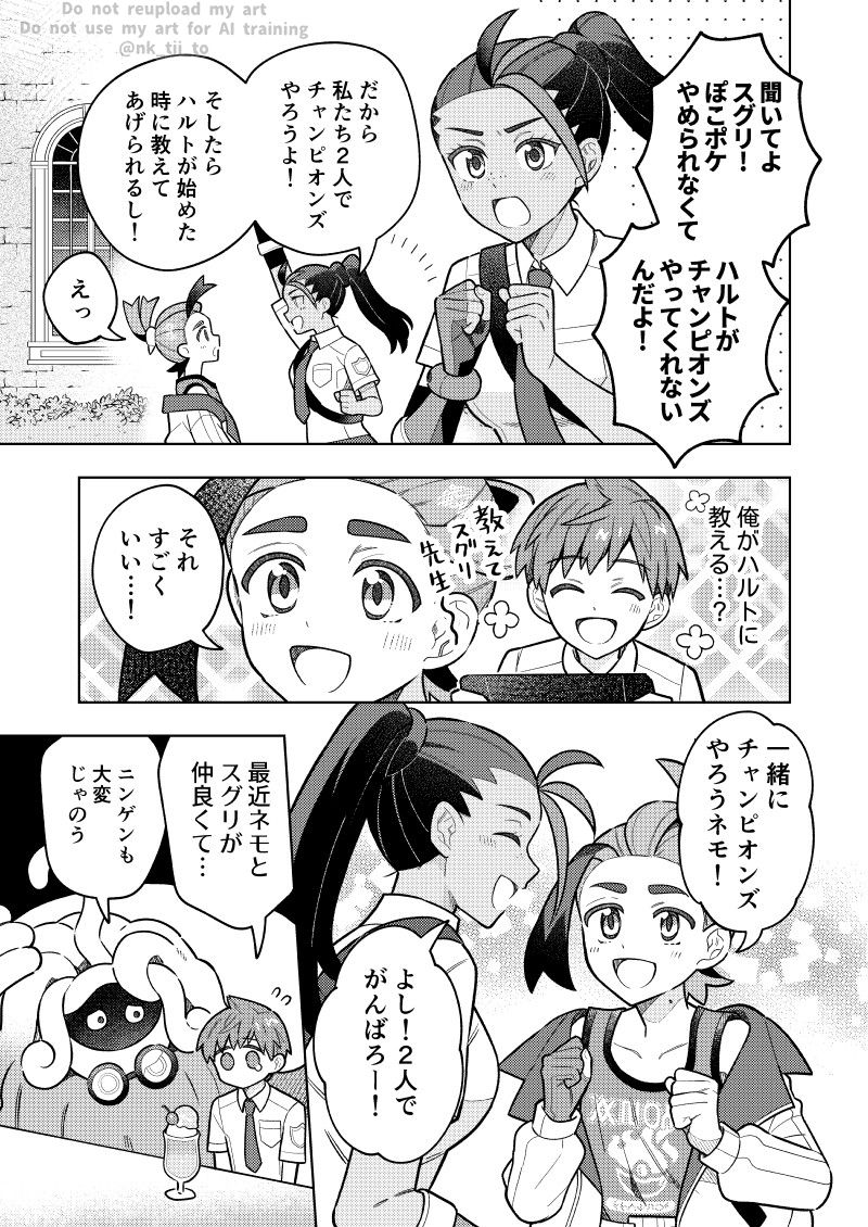 >Nemona: Kieran, listen up! Because Florian can't stop playing Pokopia, he won't play Champions with me!>Nemona: That's why we're gonna play Champions together! Then, when Florian starts playing, we can teach him!>Kieran: Huh?>Kieran (thinking): Me, teaching Florian?>Imaginary Florian: Please teach me, Kieran-sensei!>Kieran: That sounds great!>Kieran: Let's play Champions together, Nemona!>Nemona: Yeah! Let's do our best!>Florian: Recently Nemona and Kieran have been spending a lot of time together...>Professor Tangrowth: Humans sure are complicated.