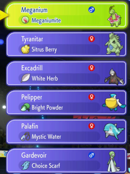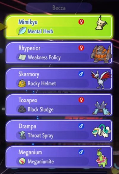 >>59148123This is who I have available to me at the moment besides the loaner shitters the game gives you. All from my past competitive teams.I mainly use Glimmora, Umbreon and Garde as my mega. I'd be usiing mega beedrill if the stupid mega stone were in the game.