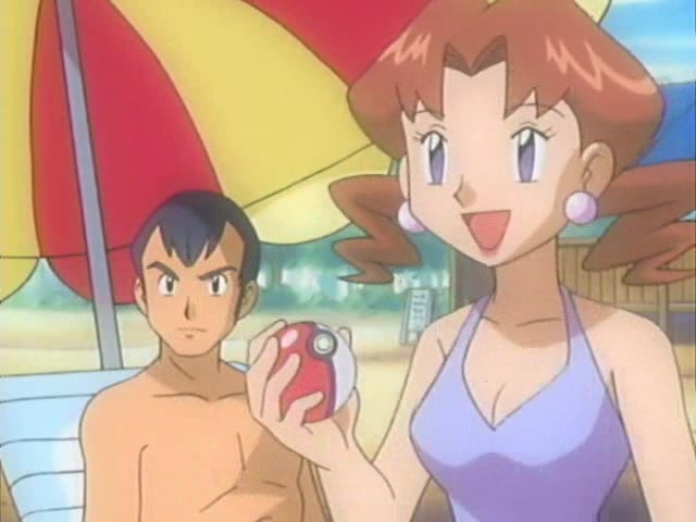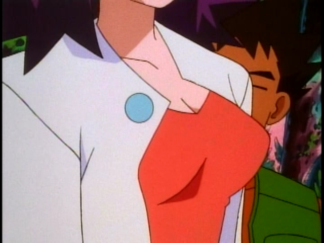 What are some examples of visible cleavage on female characters in Pokemon?What is cleavage you say?>Full or partial exposure of the separation between a woman's breasts by clothingSo a lot of people like to make a deal about characters like May, but that's just a bit of volume in the chest area. There isn't a single frame of that anime that shows a visible line dividing her breasts.