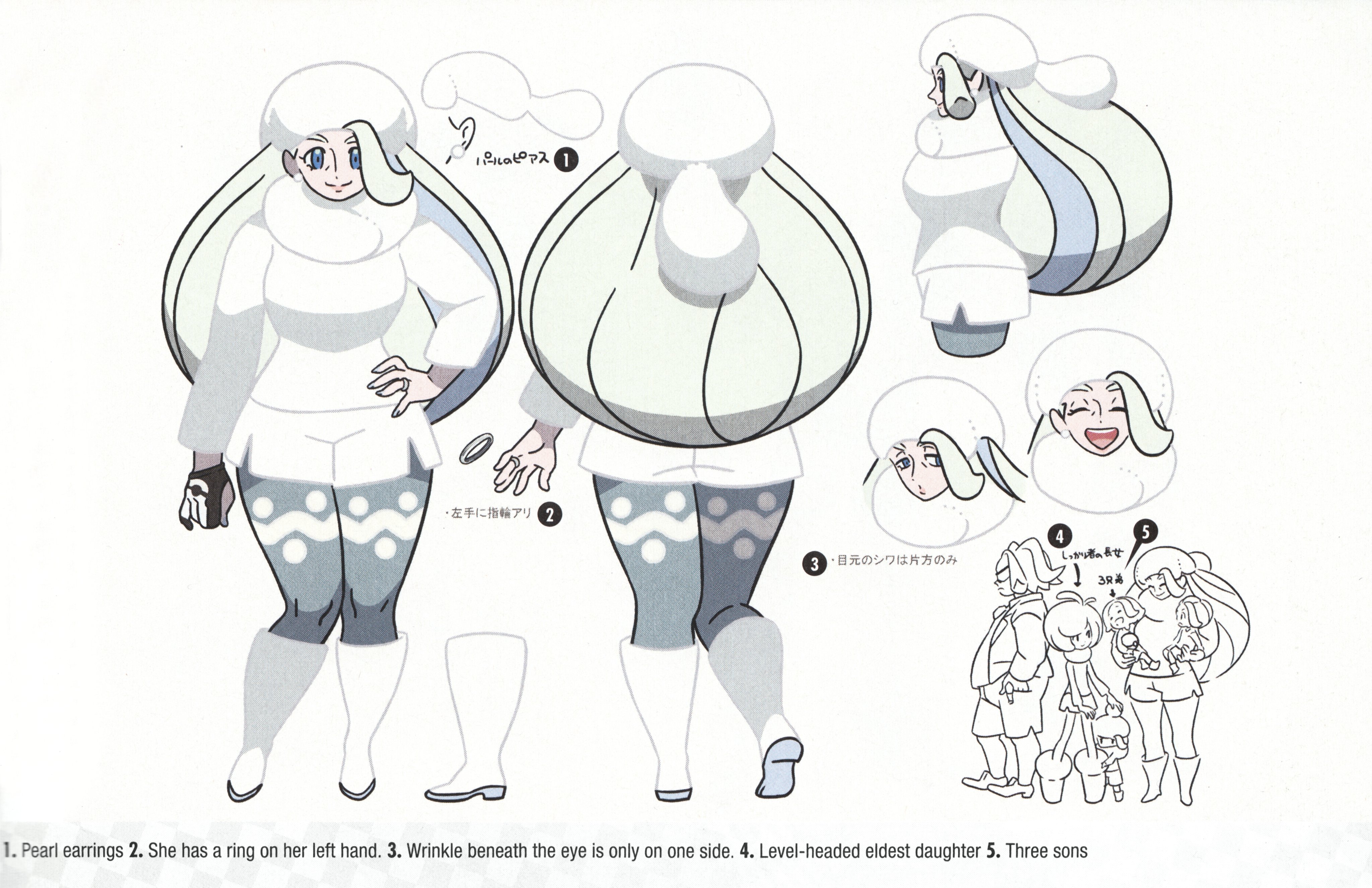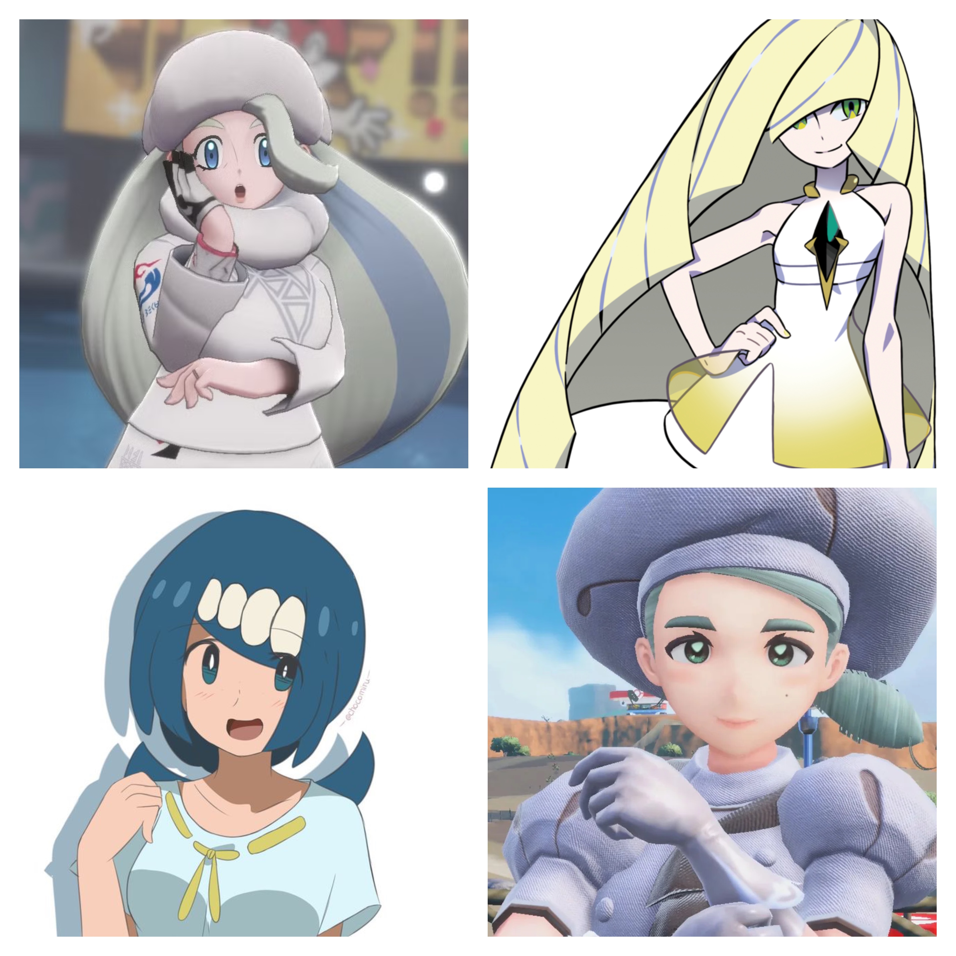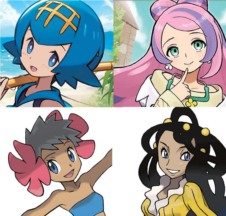 Melony is good both on and off-model, I prefer on-model Lusamine because a thin adult woman contrasts well with more curvy ones, and off-model Lana's mother.