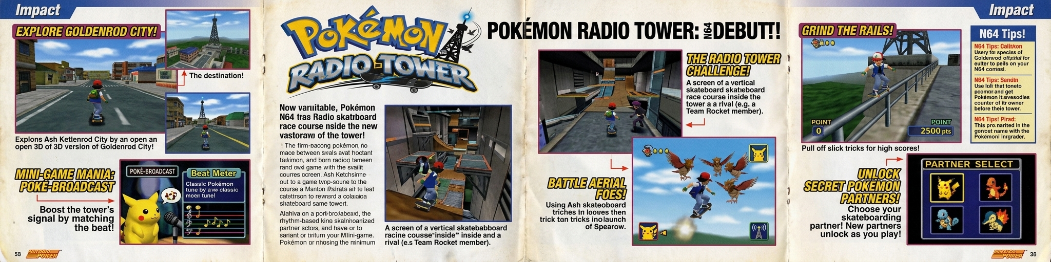 The first-ever Pokémon racing game! Navigate between levels while talking to Pokémon and join radio broadcasts in this exciting game with various courses on-screen. Ash Ketchum sets out on a high-speed course at the Radio Tower to defeat rivals and win a special collector's skateboard.