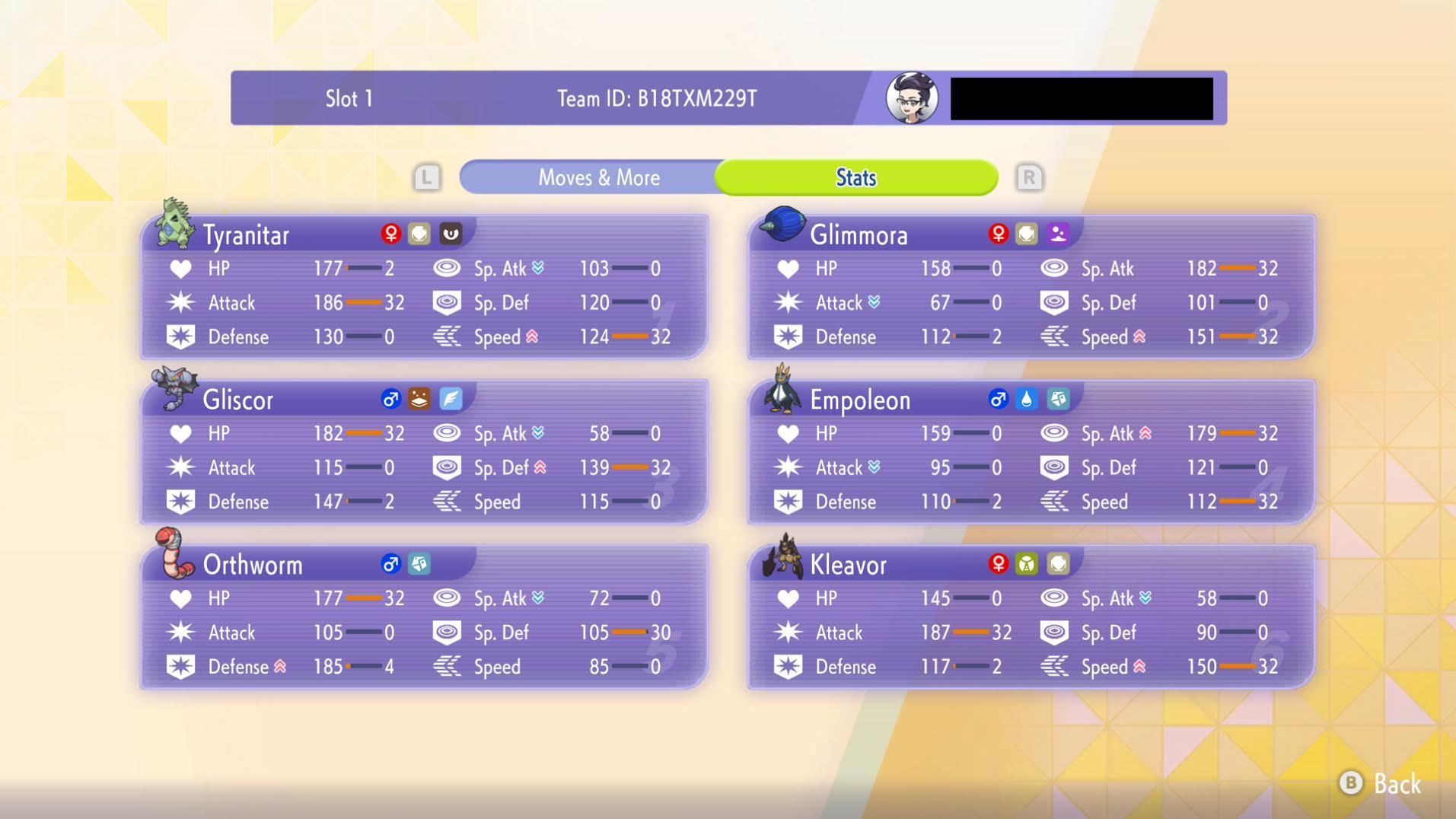 >>59172938>if you have a dupe of another player’s pokemon, that’s a dq or removal of that pokemonIt's honestly crazy to me that that's a rule in a tournament structure that allows rental teams to be used. Anyway it won't matter anymore, VGC is all on Champions now, and Champions is a separate mon data structure, we have no idea what kind of legitimacy checks (if any) the game uses or makes available. It no longer even has the rental code logic in it, the new system only encodes mon attribute values and forces you to retrain your OWN mons to match them, so the process of submitting your team rental code for their use and review will no longer even expose your mons to their checks.>>59172928One particularly odd thing is that the game evidently refuses to allow mons to visit if they do not have any "recent game". If they came over from Bank and have just sat there and never visited any modern game, evidently Champions refuses them. IDK if that's true, it's what I've read.
