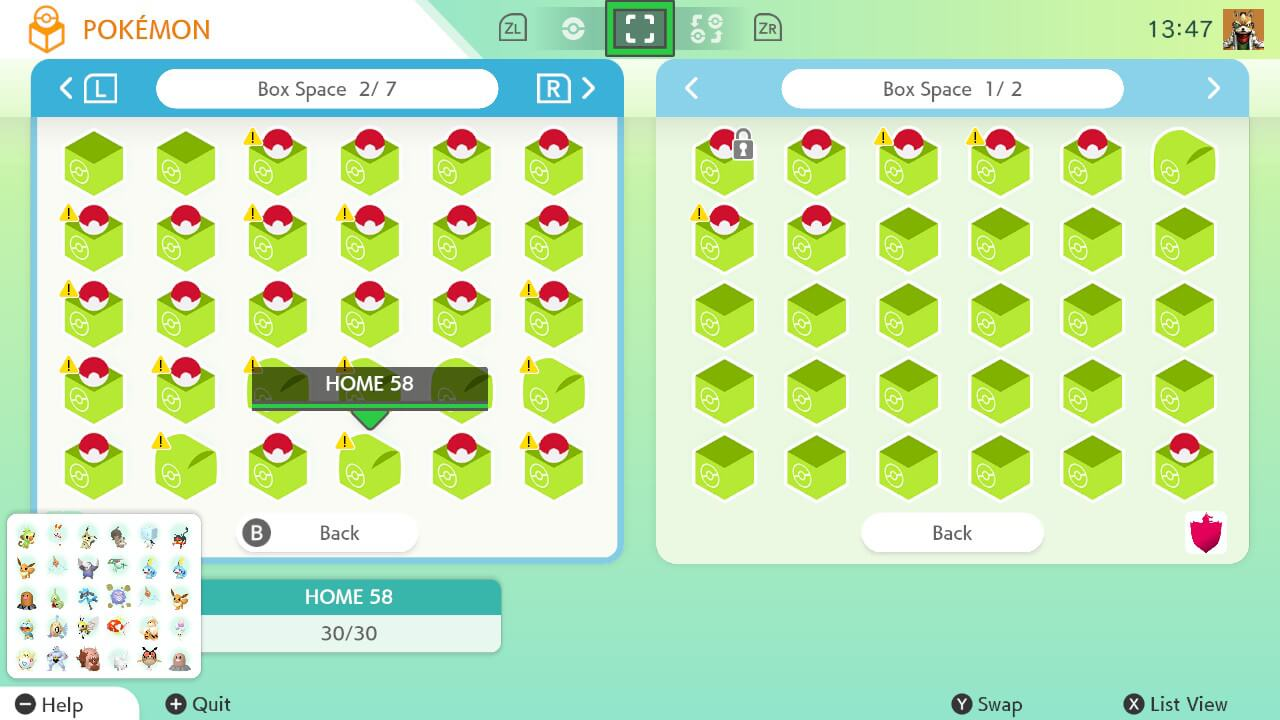 Import/unsorted box, living form dex with my OT (incomplete), box of forms without my OT, legendaries, shiny dex (incomplete), marked shinies (ordered), shinies without my OT, foreign breeding mons/ditto, old playthrough mons and stuff moved in to complete the home challenges (unsorted)