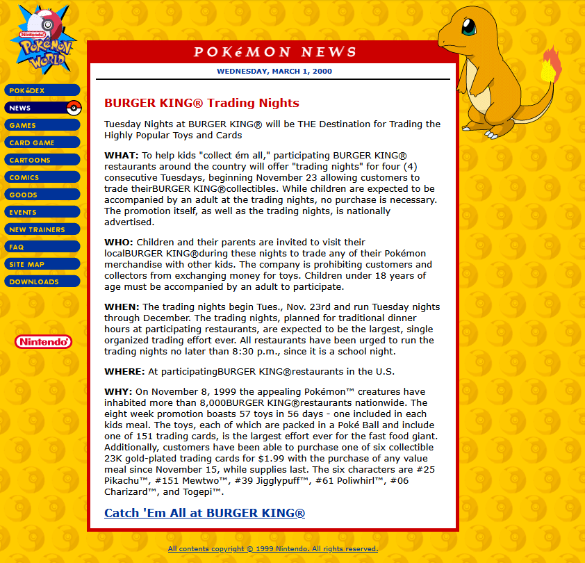 >>59174836I had some of those toys/gold-plated cards then so I was going to Burger King to get them around that time, and the trading night sounds vaguely familiar so I guess I at least heard of it. But I'm pretty certain I didn't actually go to the BURGER KING TRADE NIGHT itself