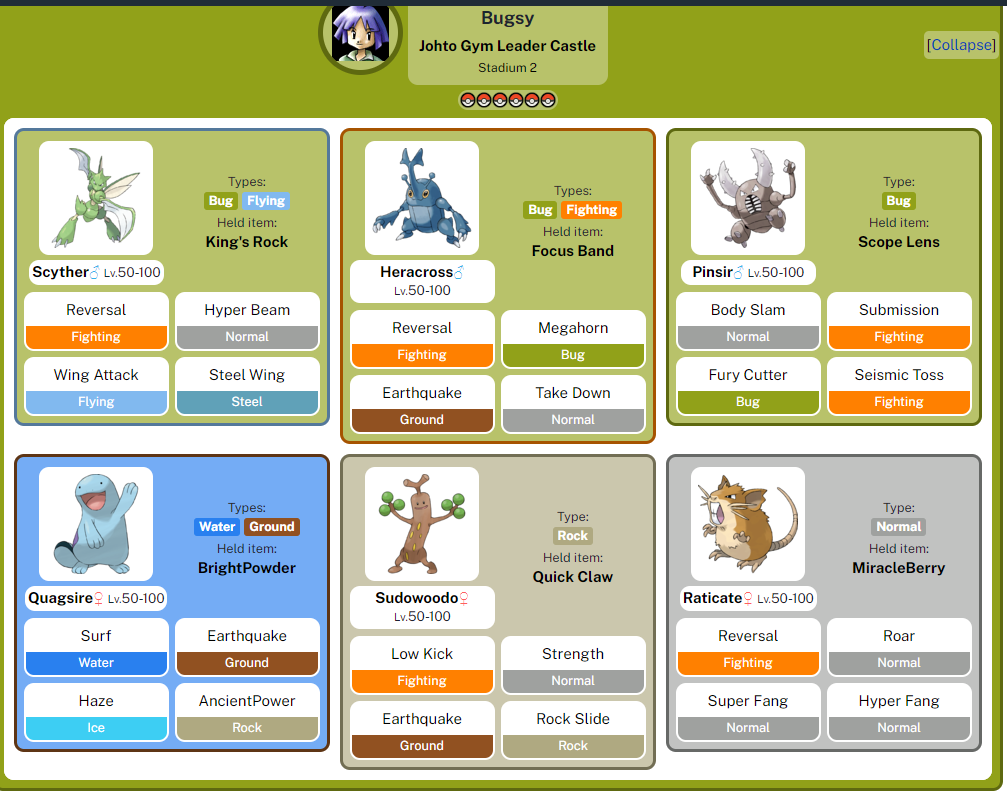 Really the only hurdles Chikorita actually faces in Johto’s gyms are Bugsy (unless the AI does >>59177694), and Morty. It’s definitely underrated and poison powder/reflect is honestly evil.