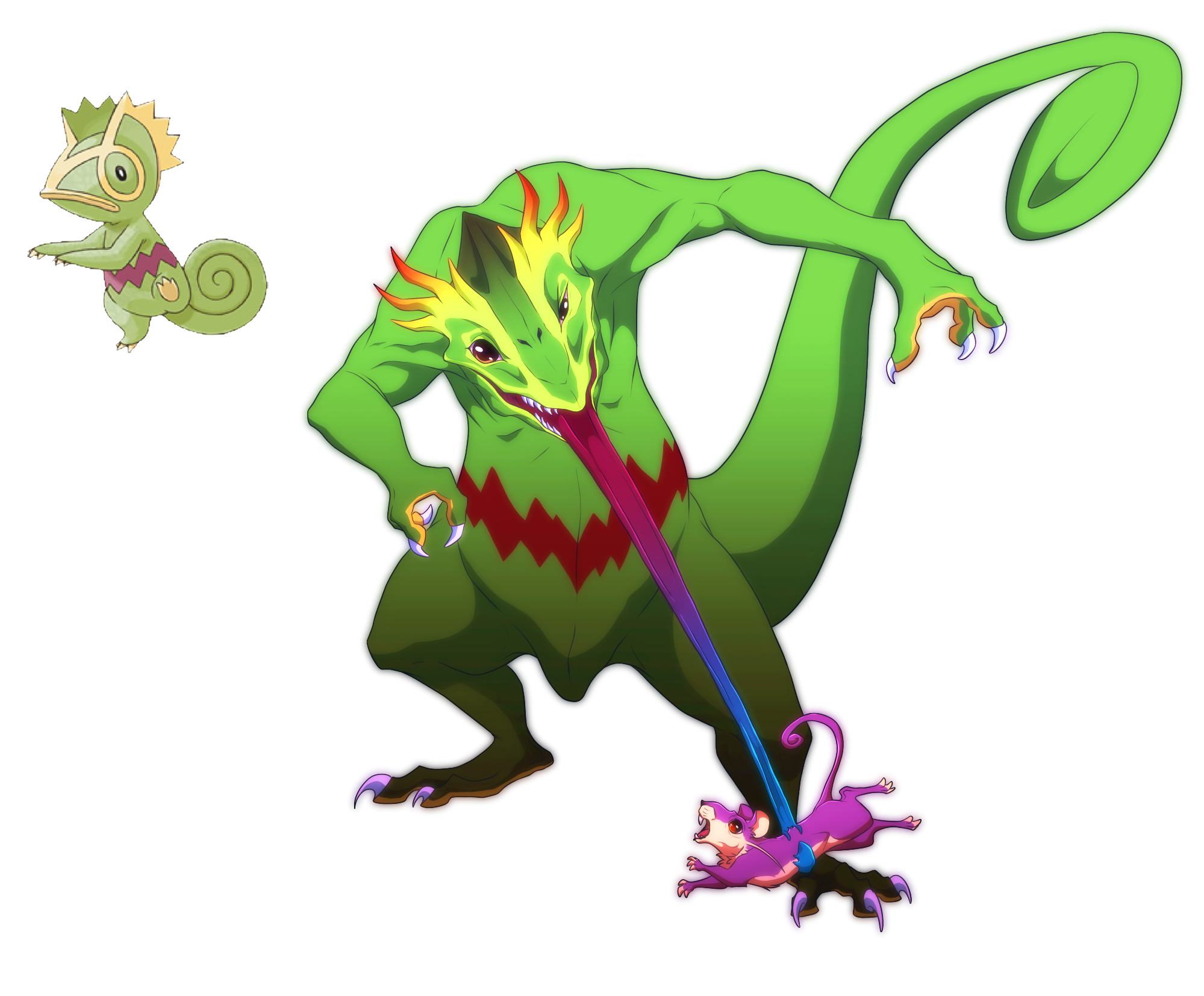 >>59179127>>59188826I got bored so made up a prevo and a few evos on some myths.Kecleon prevo stats:Hp:45Atk: 56Def: 45Sp.atk:41Sp.def: 75Speed: 40NormalHeight: 1'04 weight: 14.4 lbsAbility: Color change, HA: ProteanKecleon evo stats:Hp: 110Atk: 125Def:90Sp.atk:85Sp.def:160Speed: 70NormalHeight: 5'10 weight: 178.4 lbsAbility: Mimicry/color change, HA: ProteanKecleon split evo1 stats:Hp: 80Atk: 85Def: 55Sp.atk:130Sp. Def: 150Speed:100Normal/psychic Height:5'6 weight: 122.5 lbsAbility: mimicry/color change, Ha: Protean Kecleon split evo2 stats:Hp: 75Atk: 80Def: 75Sp atk: 135Sp.def: 115Speed: 120Normal/ghost Height: 5'2 weight: 82.3 lbsAbility: Clear Body/color change, HA: proteanKecleon split evo3 stats:Hp:95Atk: 105Def: 115Sp.atk: 90Sp.def: 135Speed: 60Normal/poisonHeight: 6'9 weight: 343.9 lbsAbility:Poison Point/color change, HA: ProteanWasn't too sure for the last split Evo due to the myth of chameleons being poisonous.
