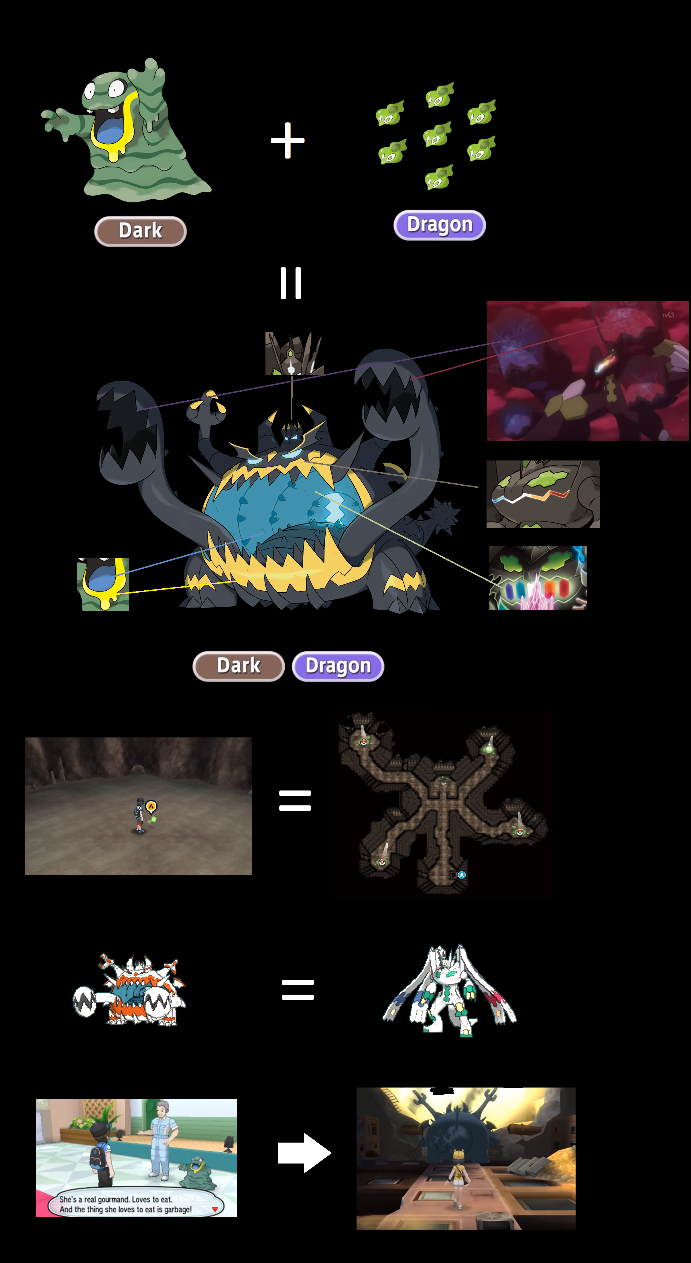 I've been seeing a lot of "Guzzlord is Zygarde" theories and they're all really extreme stretches. No one brings up the more likely "Guzzlord is Muk" these days, which may prove to have more evidence in-game.