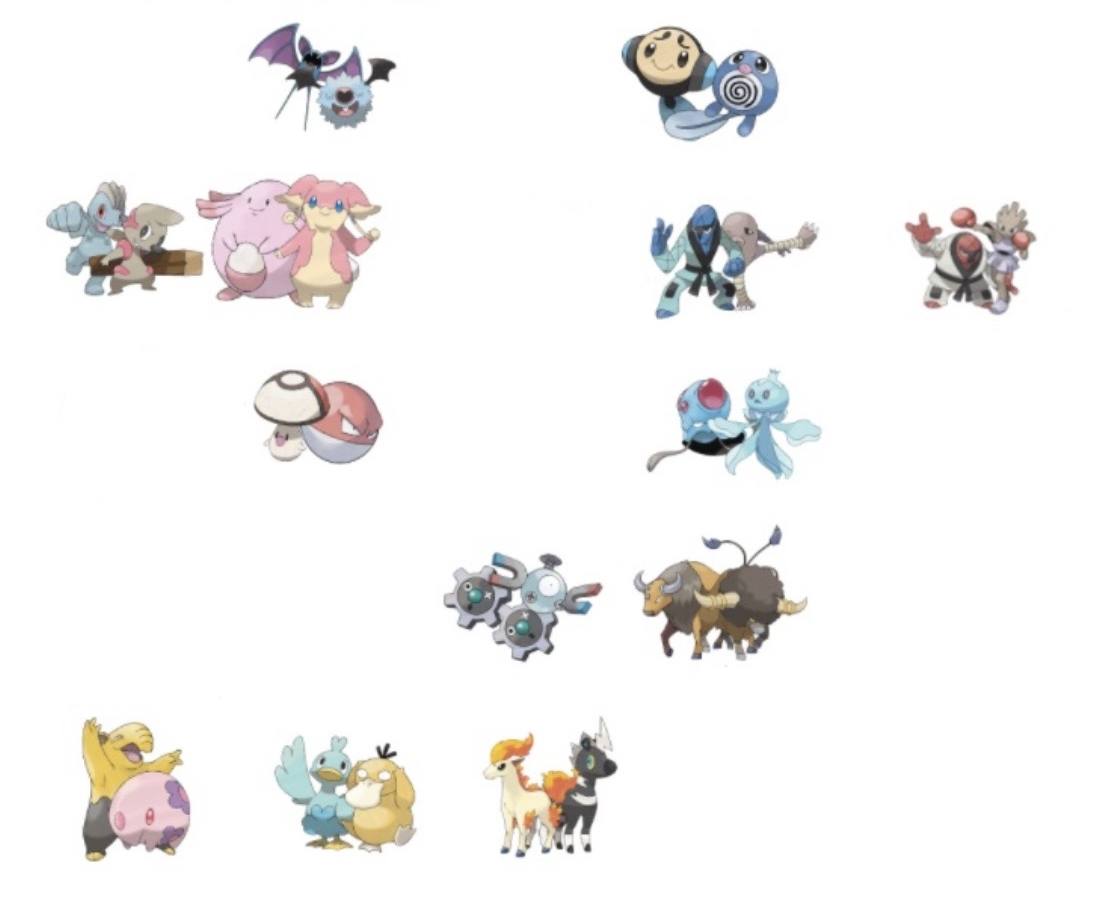 y'know I really like a lot of the pose pairings hereDrilbur arms up with Sandshrew arm down, Machop punching behind a confident Timburr leaning forward to make space, Ducklett and Psyduck partying down thereKanto and Unova duos are so kino