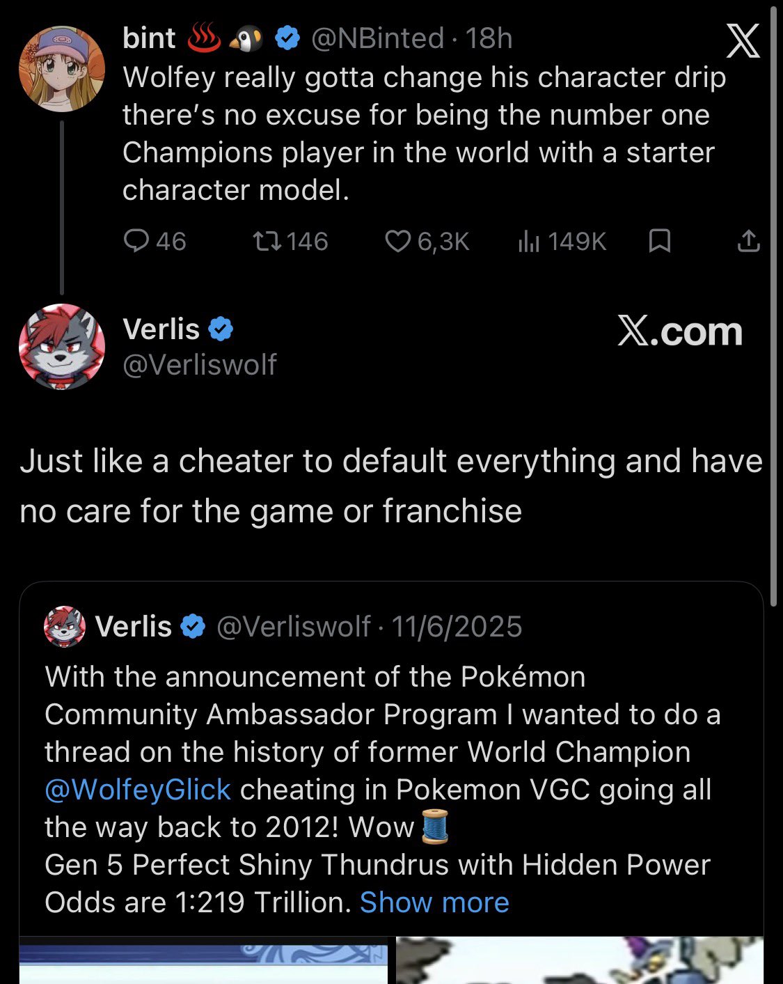 >>59196716if you gen a pokemon with stats that aren't possible that is an advantage and cheatingwolfey did such a thing in vgc 2024, using a magmar with an impossible special attack iv