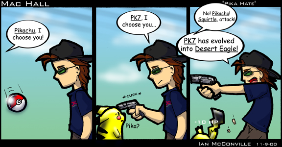 >>59197290>Le edgy comic about killing pokemon XDPokemon are incredibly broken, in what universe would you be able to even draw a gun before a litteral ray of light flies to you? Fuck, even quick attack would just slap your face before you could react.