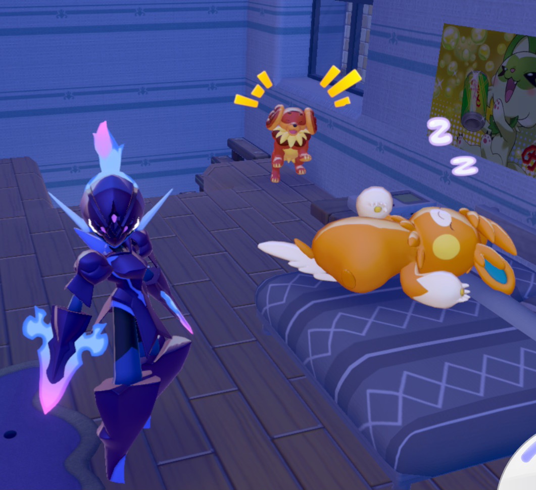Really wanted to make a gamer house with glowing floors and walls for Mimikyu, but he absolutely hates bright places.